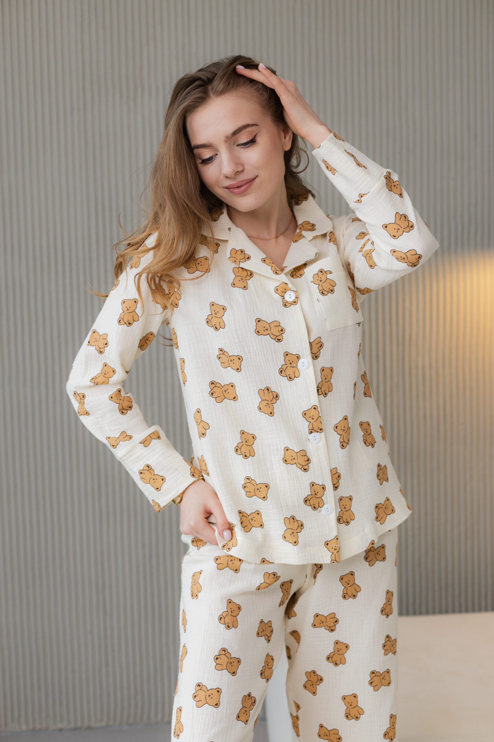 Жіноча піжама BO.Brand муслінова з ведмедиками