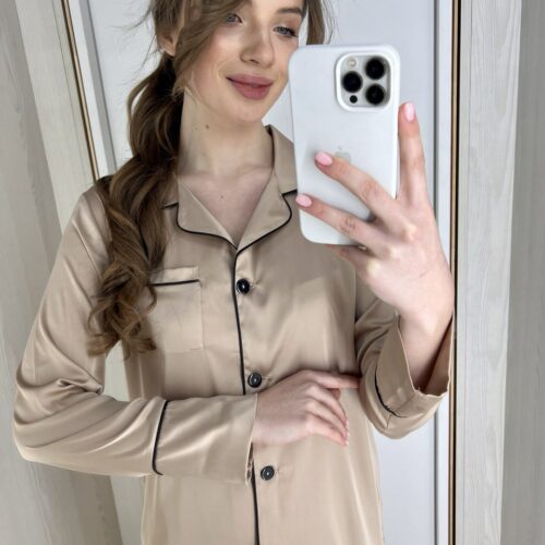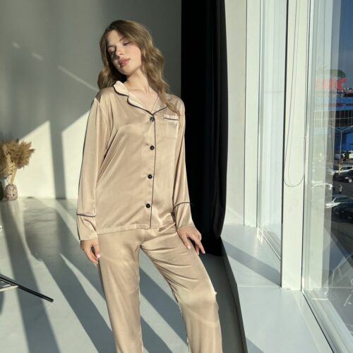 Жіноча піжама BO.Brand комплект сорочка та штани, бежевий