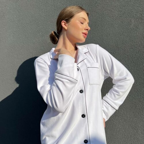 Жіноча сорочка на ґудзиках для дому та відпочинку, колір білий
