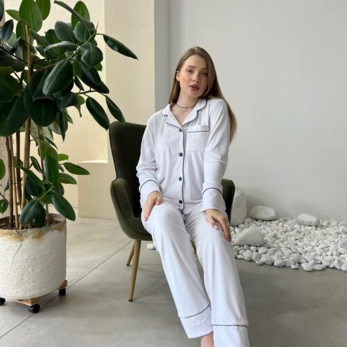 Жіноча піжама BO.Brand на ґудзиках зі штанами, колір білий