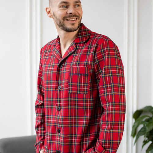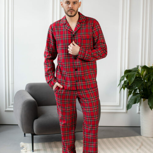 Чоловіча котонова піжама BO.Brand, колір червоний в клітинку