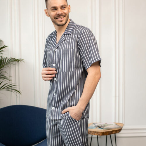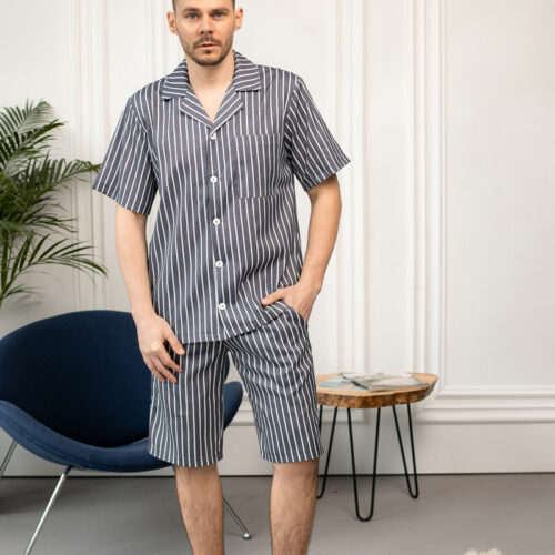 Чоловіча піжама BO.Brand, котон (сорочка на ґудзиках та шорти з кишенями, смужка графіт)