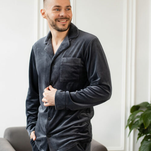 Тепла чоловіча велюрова піжама BO.Brand, колір графіт