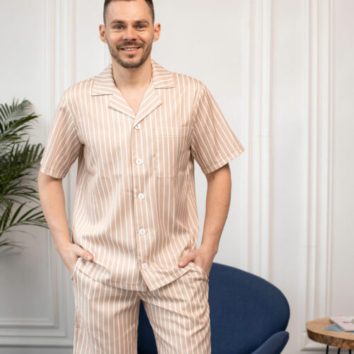 Чоловіча піжама BO.Brand з льону в бежеву смужку