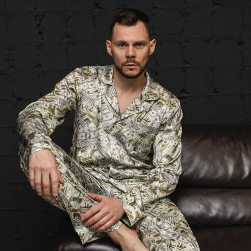 Сатинова чоловіча піжама BO.Brand принт долари