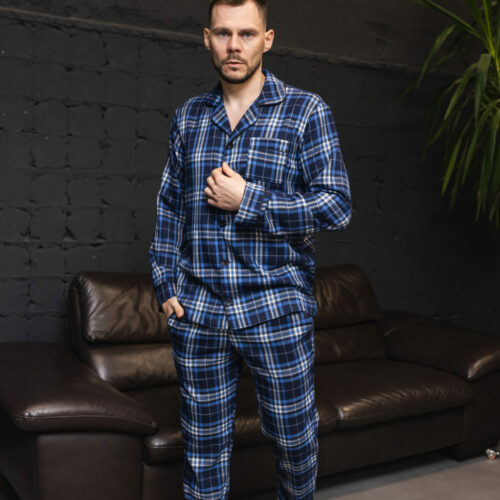 Чоловіча піжама BO.Brand котонова у синю клітинку