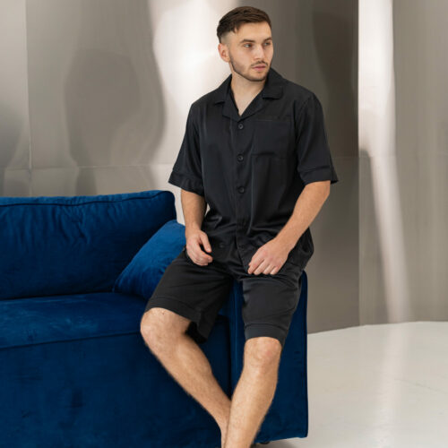 Піжама чоловіча шовкова BO.Brand шорти і сорочка в чорному кольорі