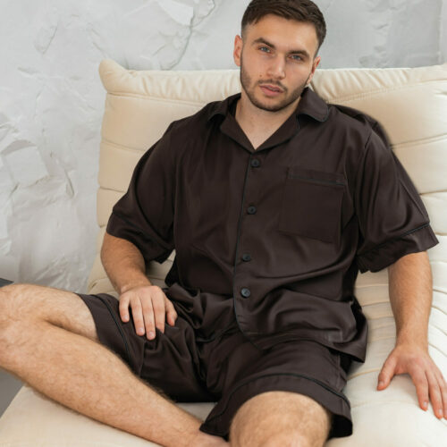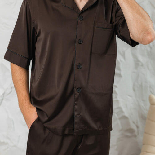 Чоловіча піжама шовкова BO.Brand шорти та сорочка, коричневий колір