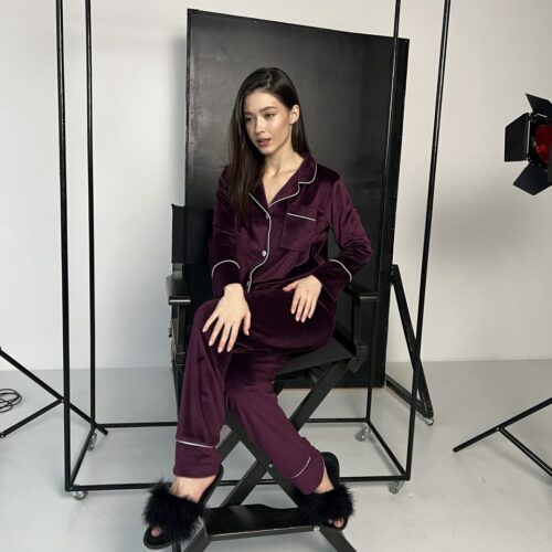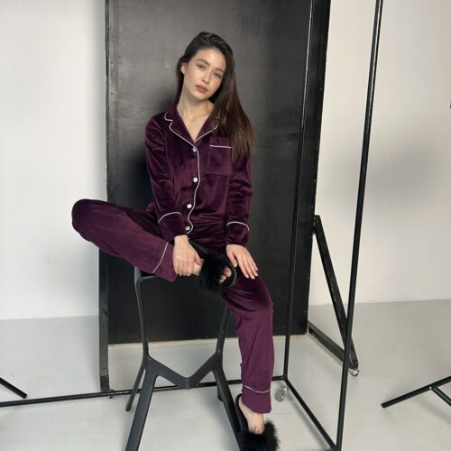 Жіноча піжама BO.Brand всесезонна, сорочка та штани, колір пудровий