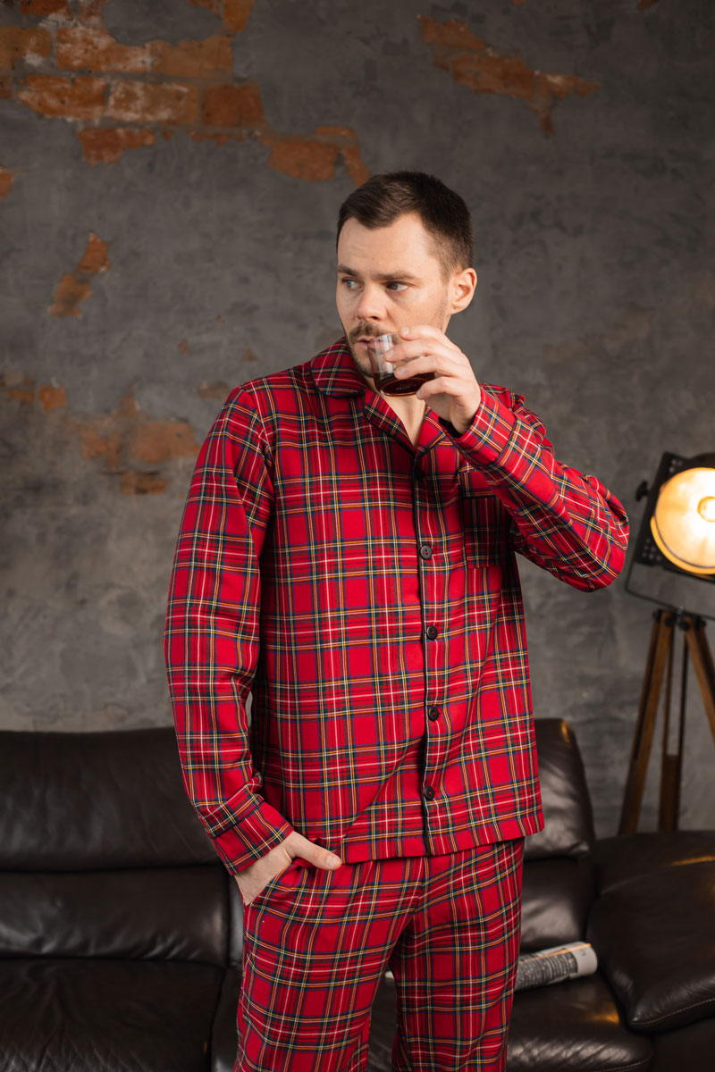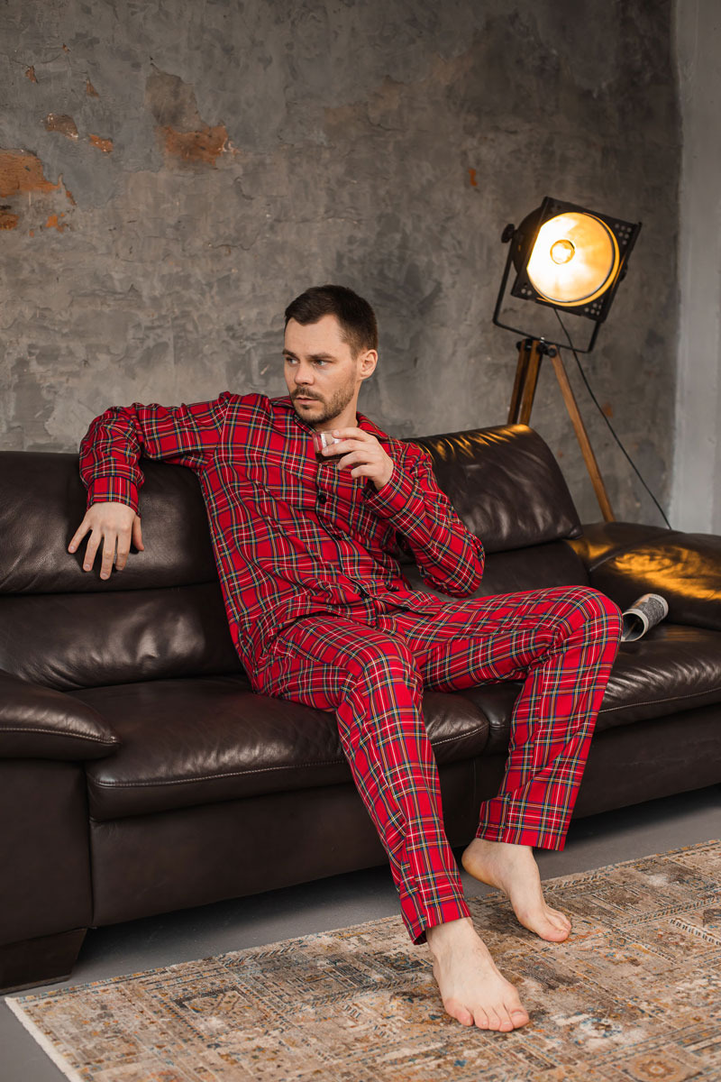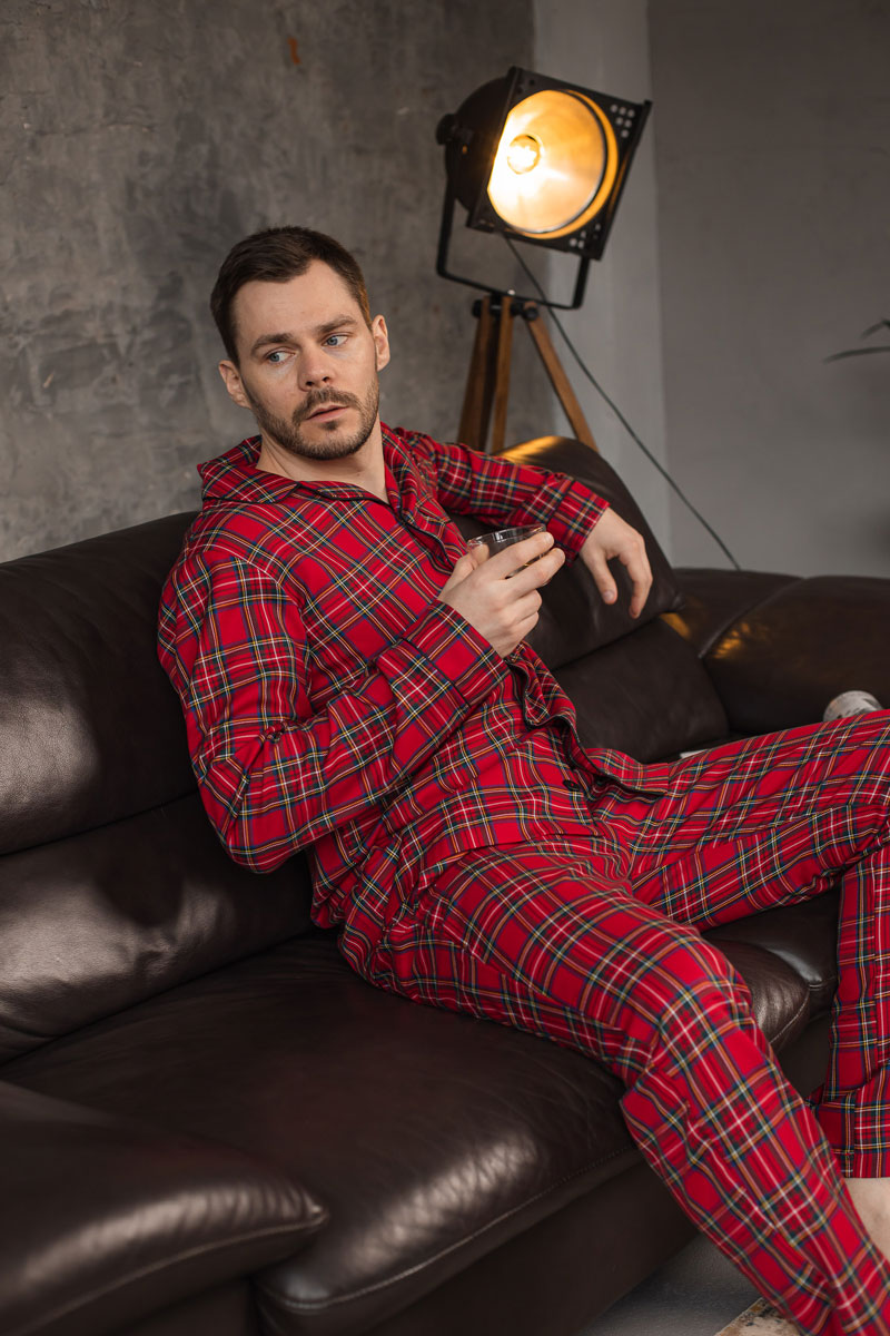 Чоловіча котонова піжама BO.Brand, колір червоний в клітинку