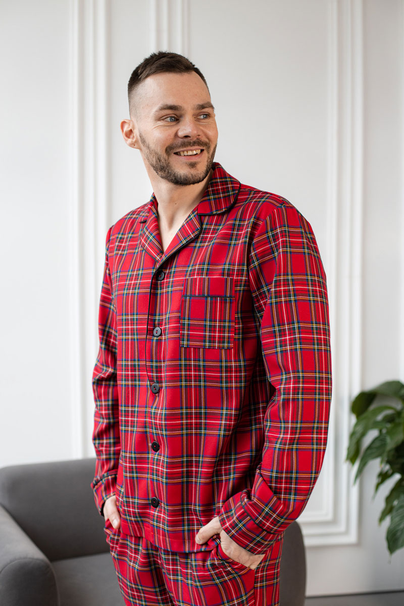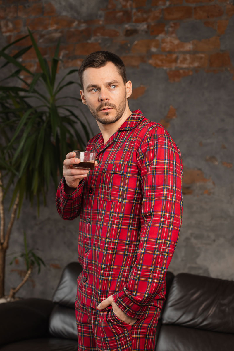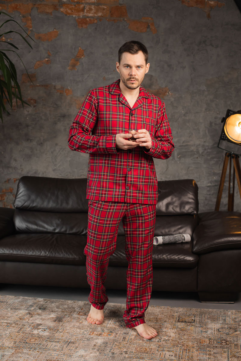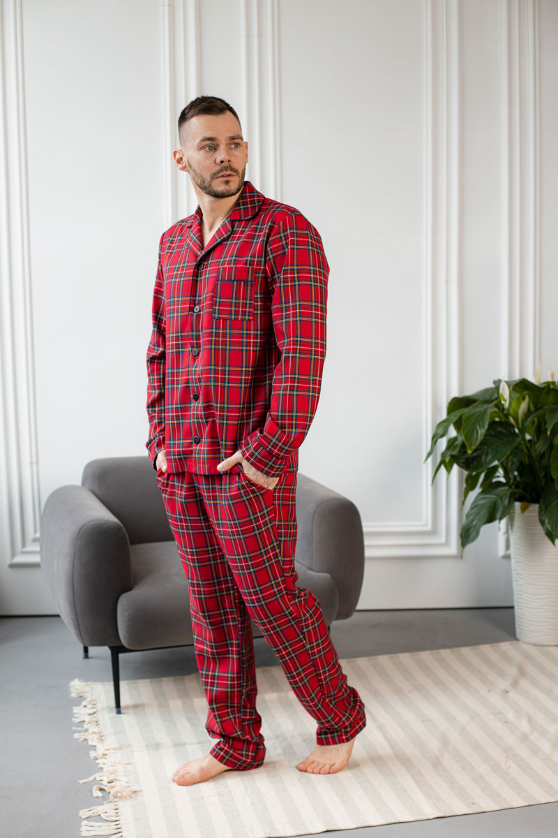 Чоловіча котонова піжама BO.Brand, колір червоний в клітинку