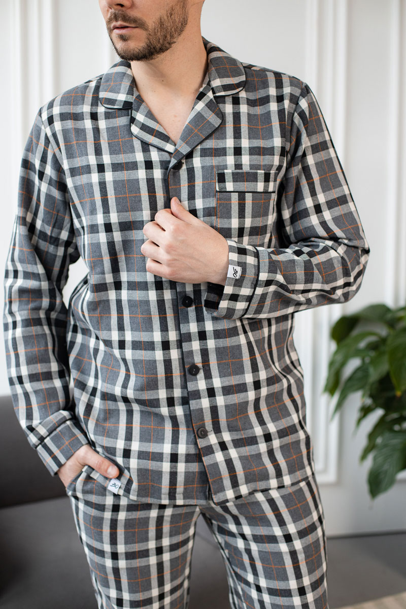 Чоловіча котонова піжама BO.Brand сіра – це не просто піжама, це вираз вашого стилю та комфорту в одному. Виготовлена з високоякісного котону, ця чоловіча піжама поєднує в собі бездоганний дизайн і найкращі матеріали для найкращого відчуття на тілі.