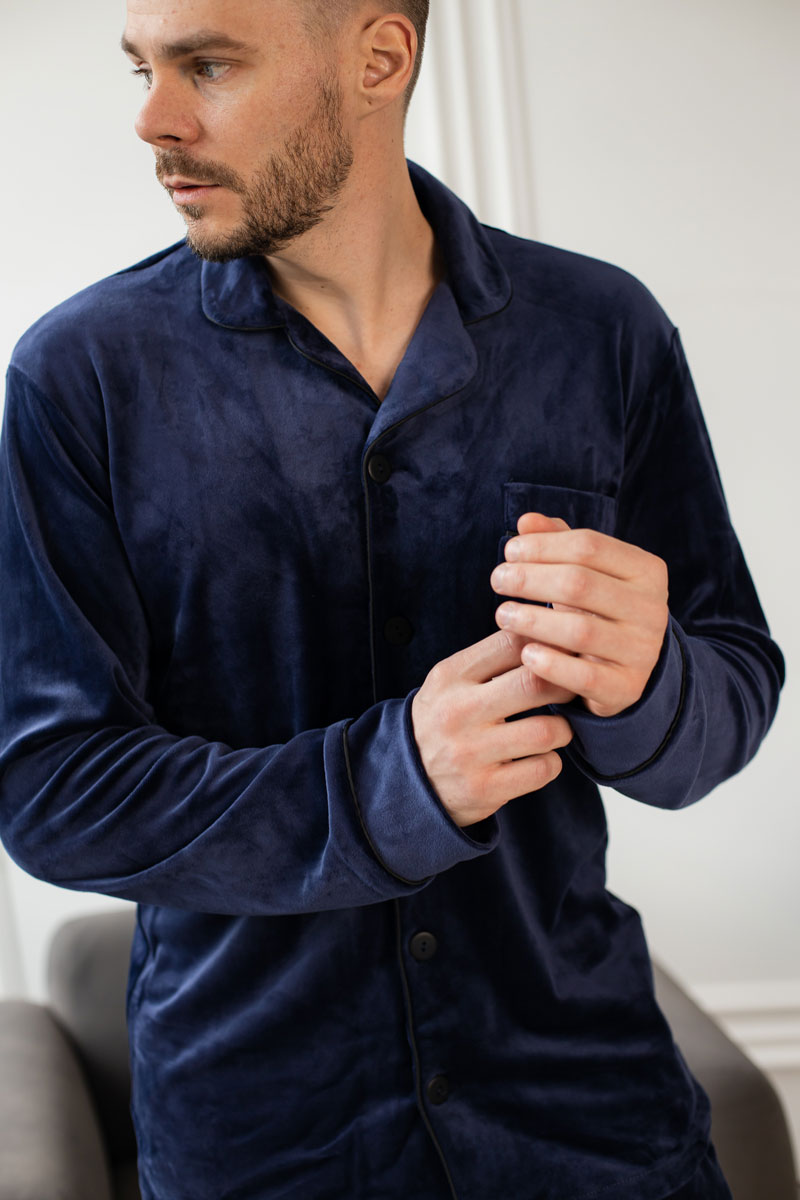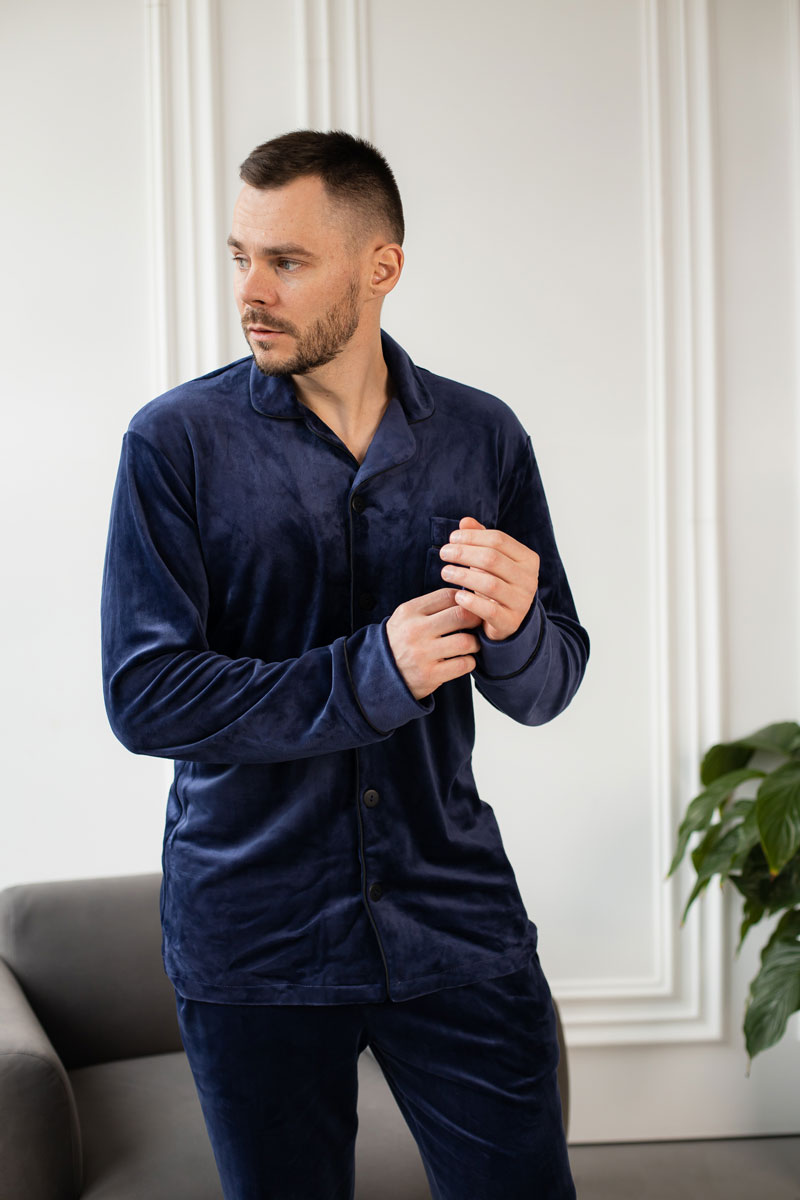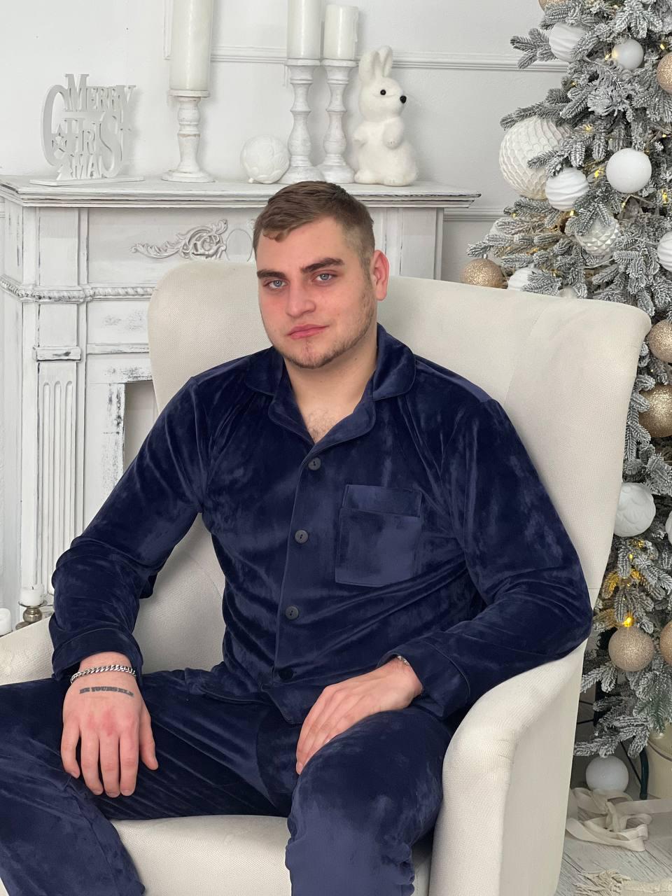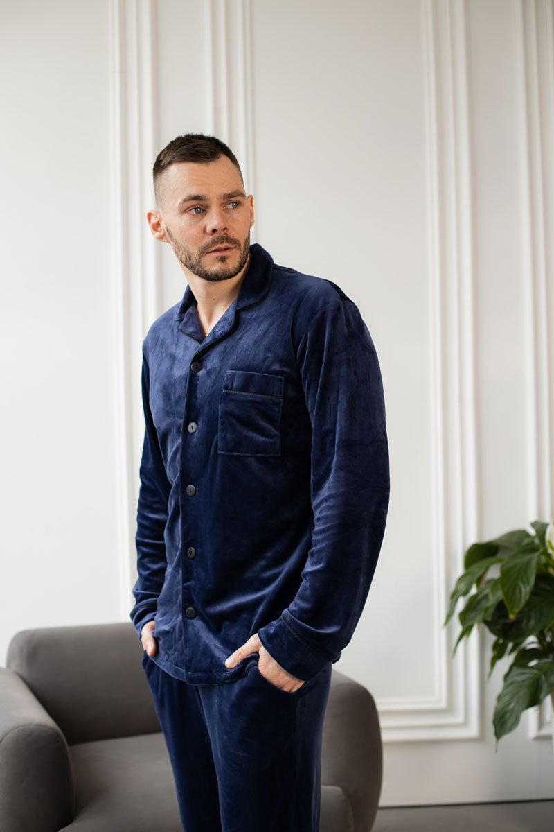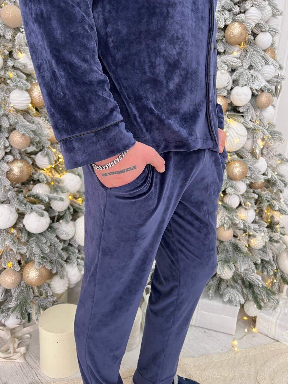 Чоловіча велюрова піжама BO.Brand синій колір