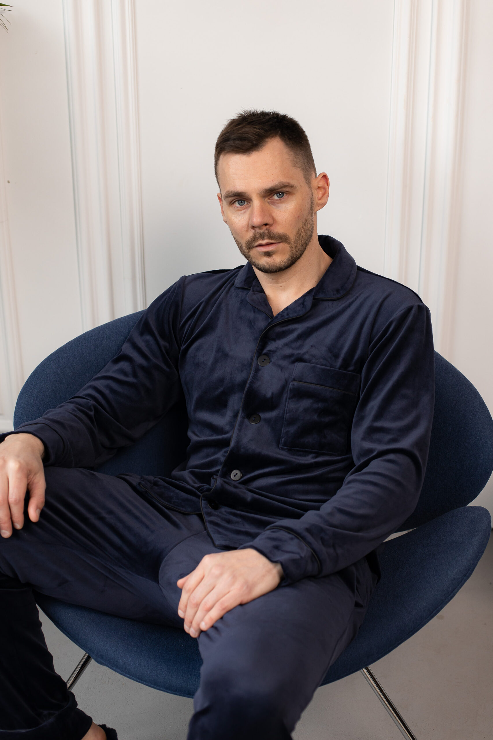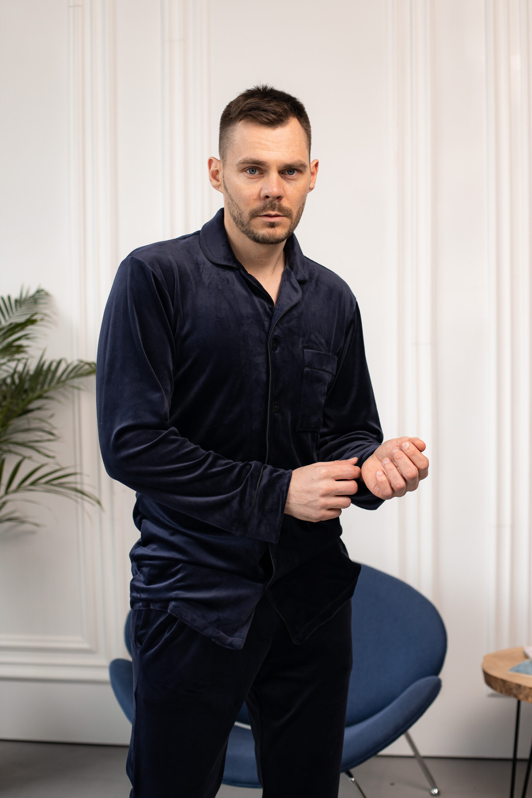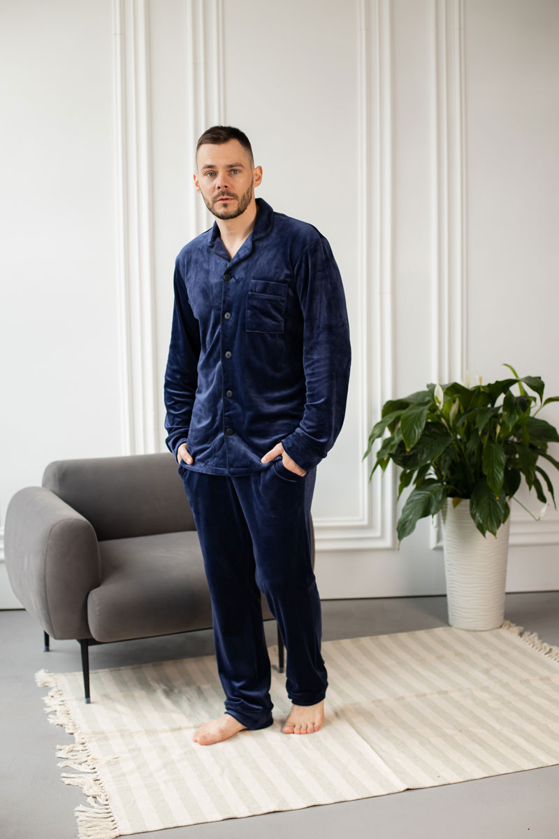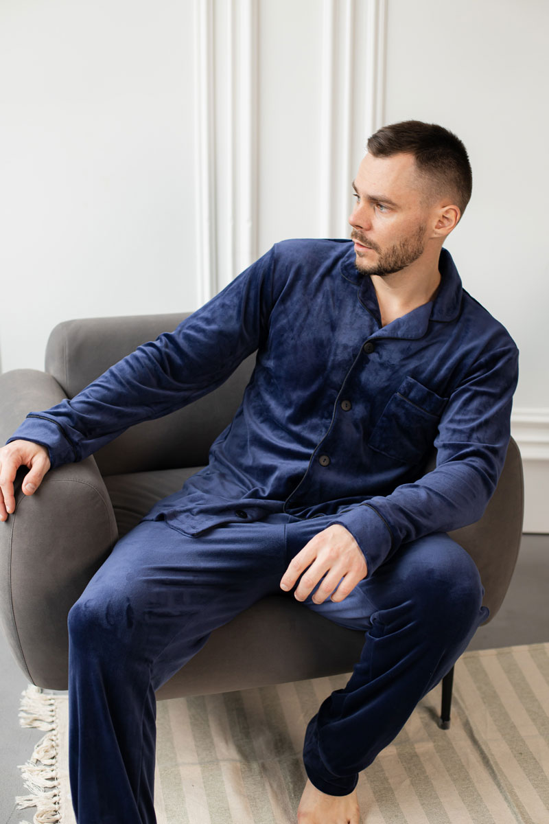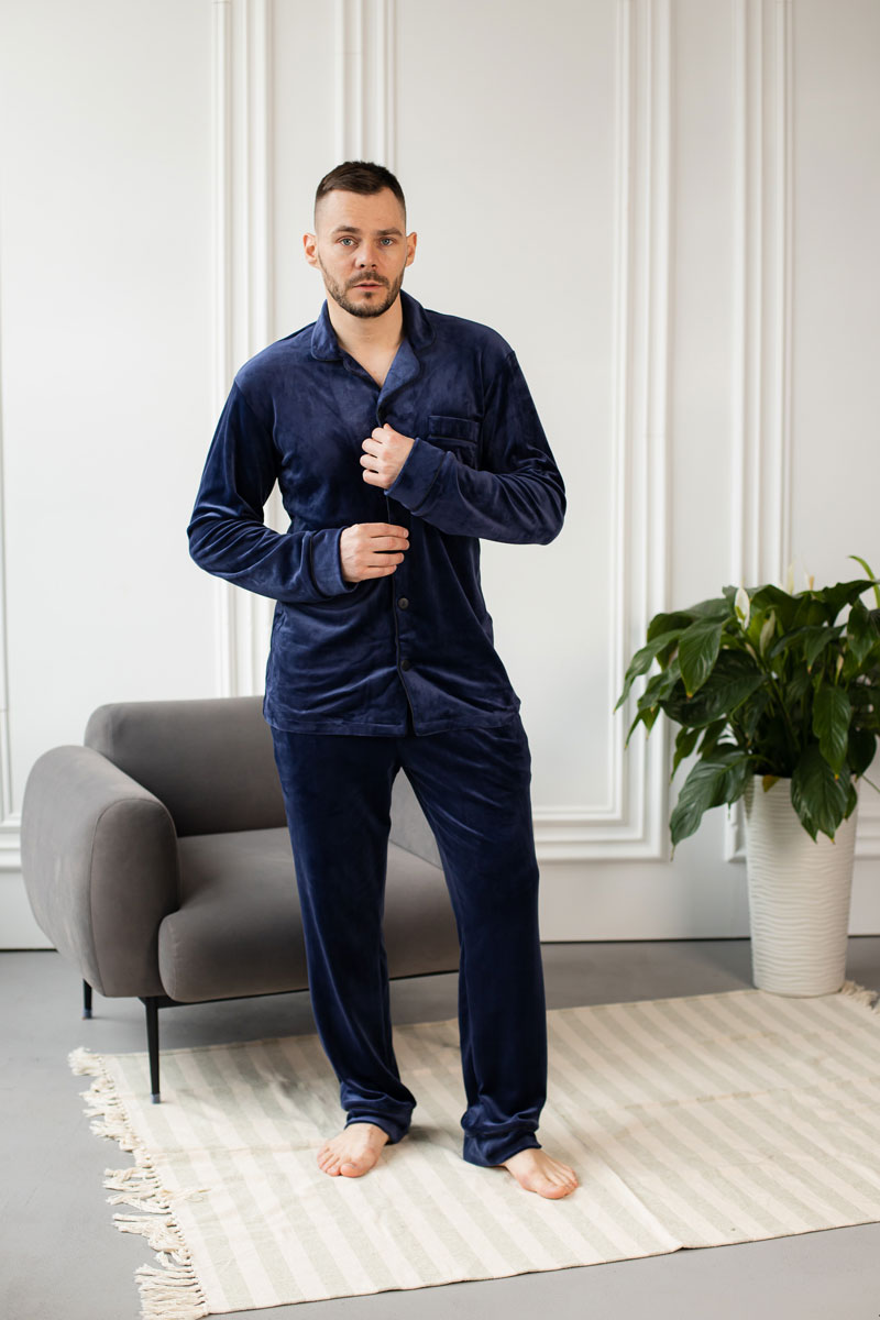 Чоловіча велюрова піжама BO.Brand синій колір