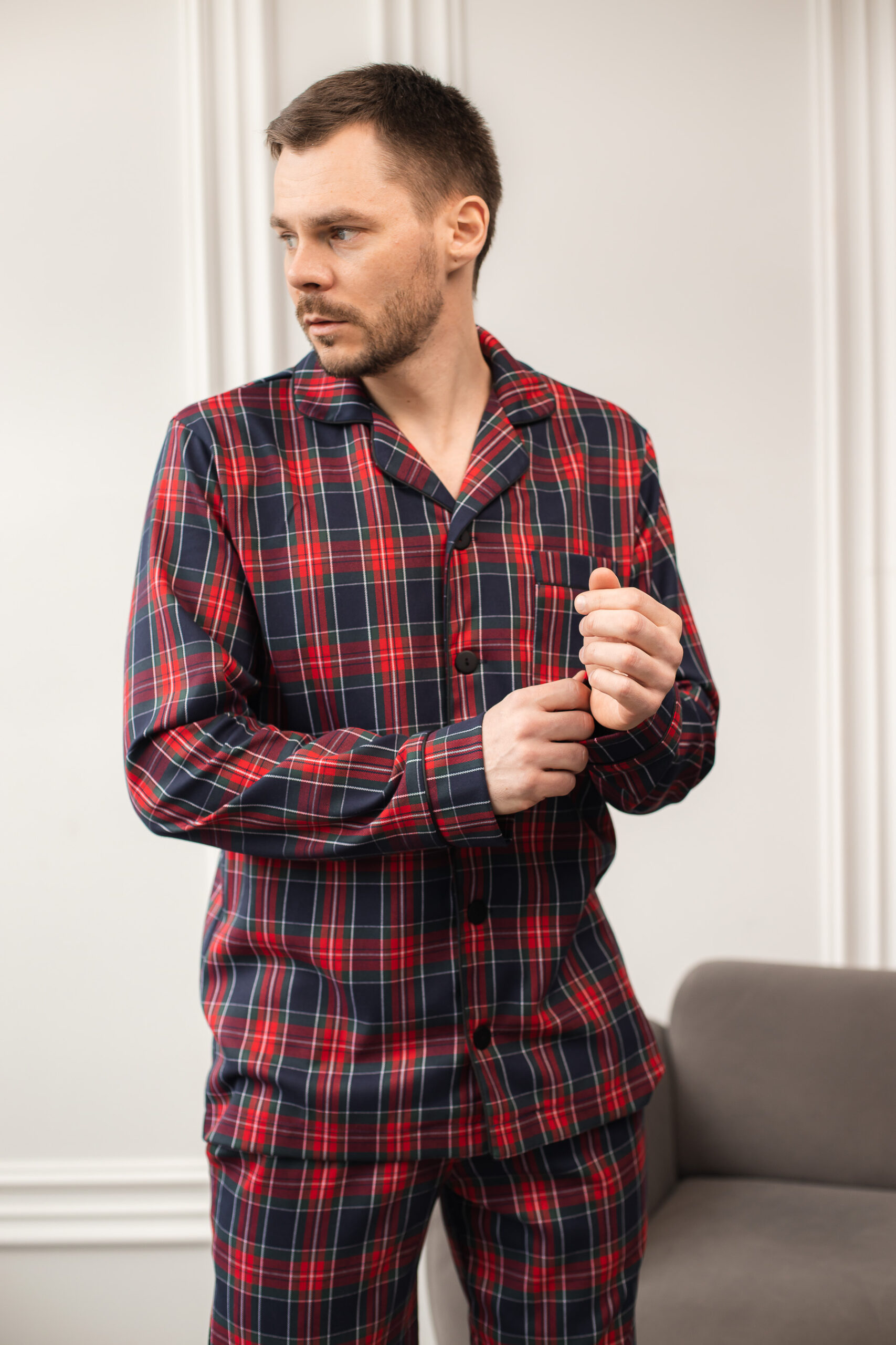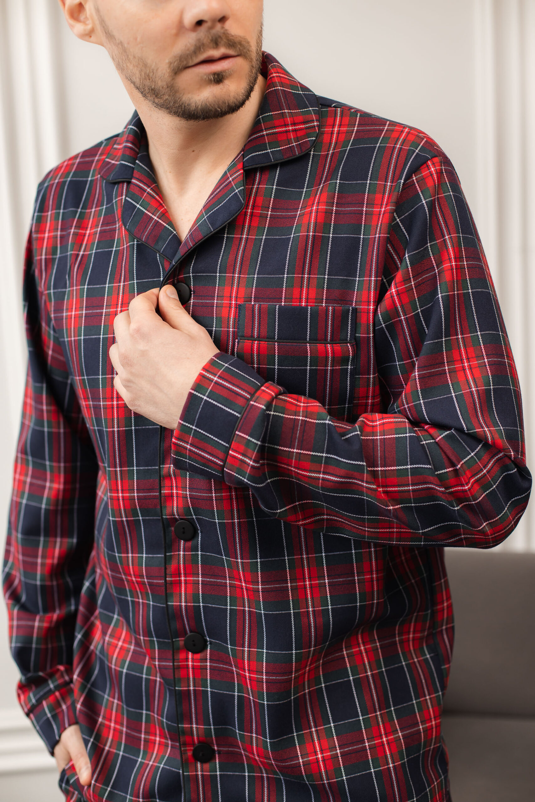 Ця червоно-синя піжама від BO.Brand – це не просто одяг для сну, а справжня інвестиція у власний комфорт. Дозвольте собі насолоджуватися моментами релаксу у вишуканому стилі з цією неймовірною чоловічою піжамою.