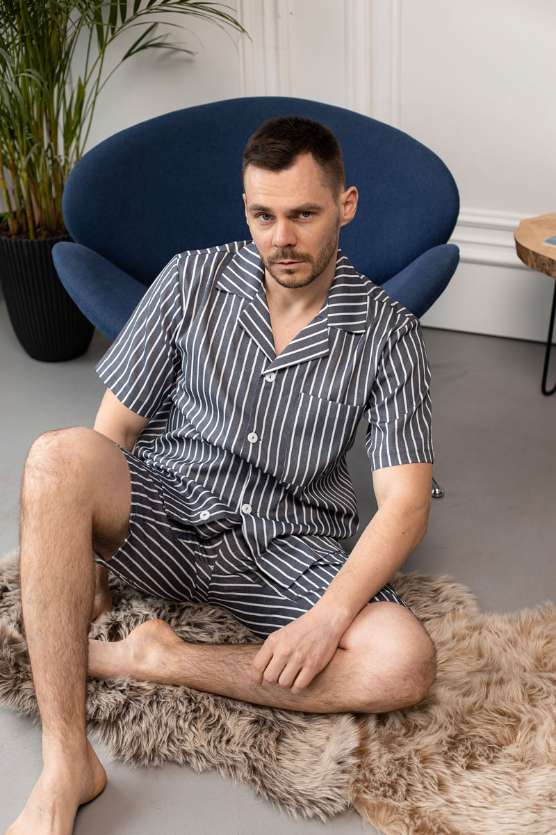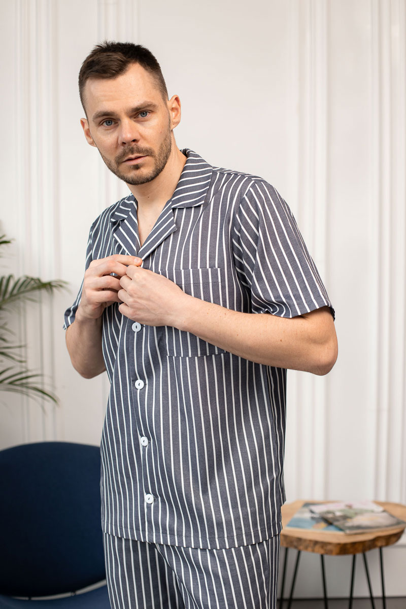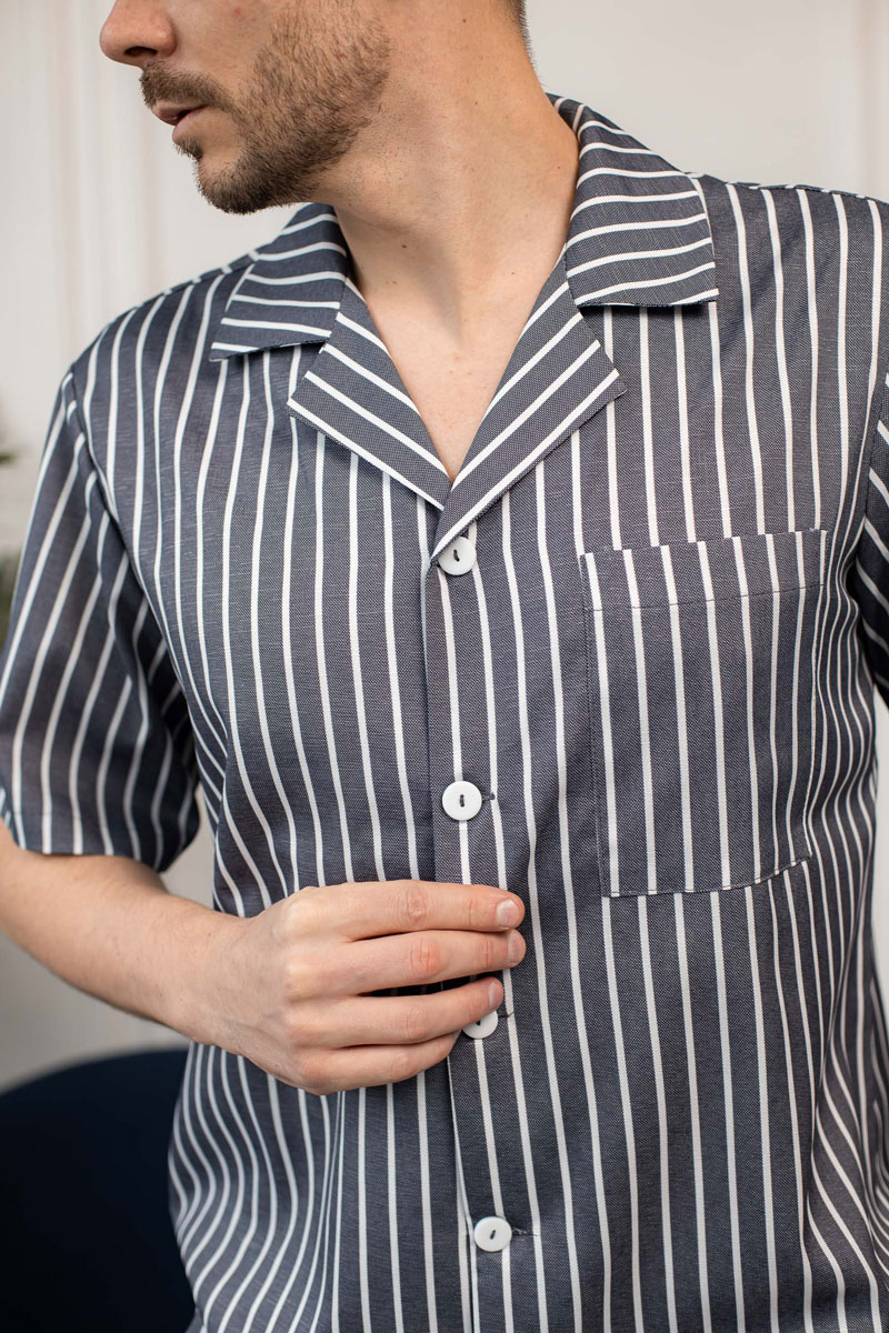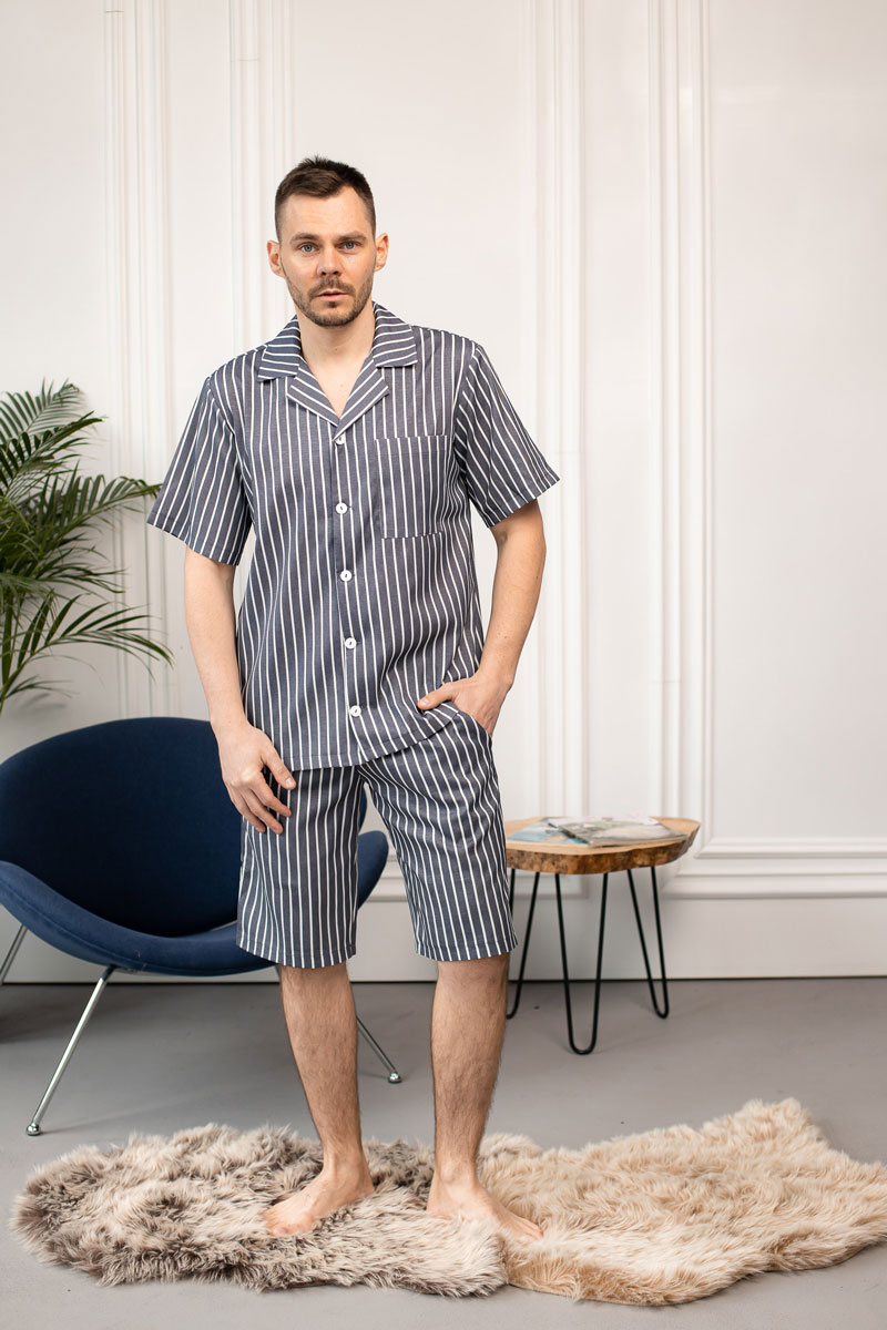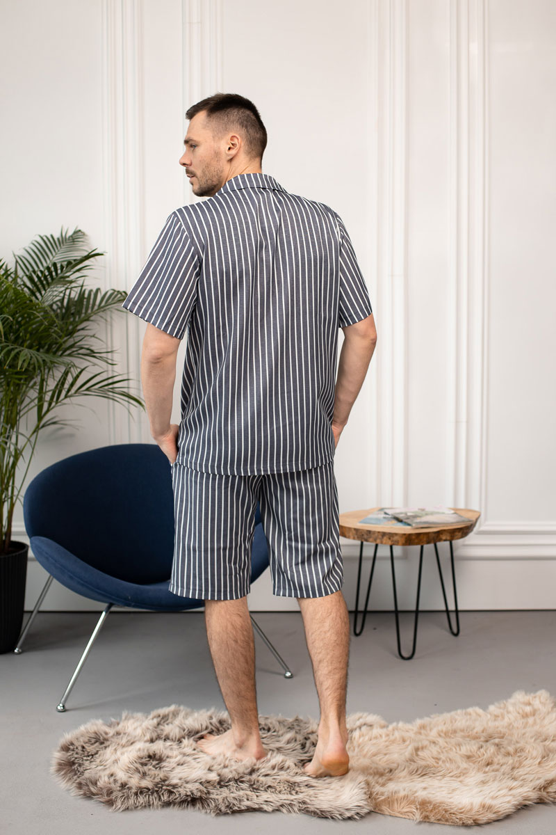 Чоловіча піжама BO.Brand, котон (сорочка на ґудзиках та шорти з кишенями, смужка графіт)