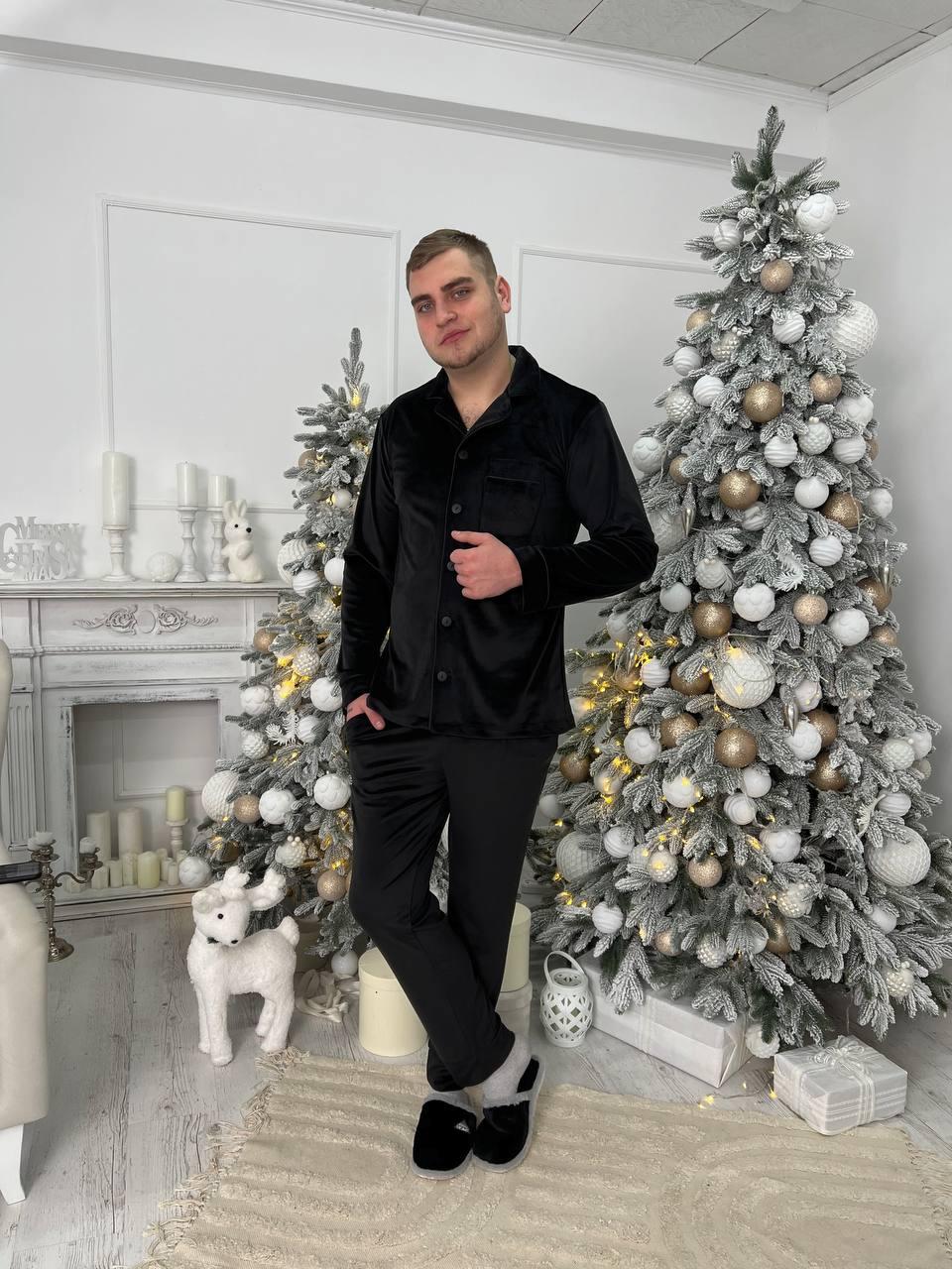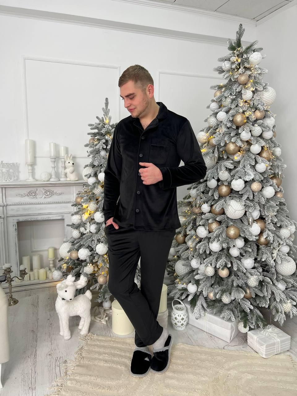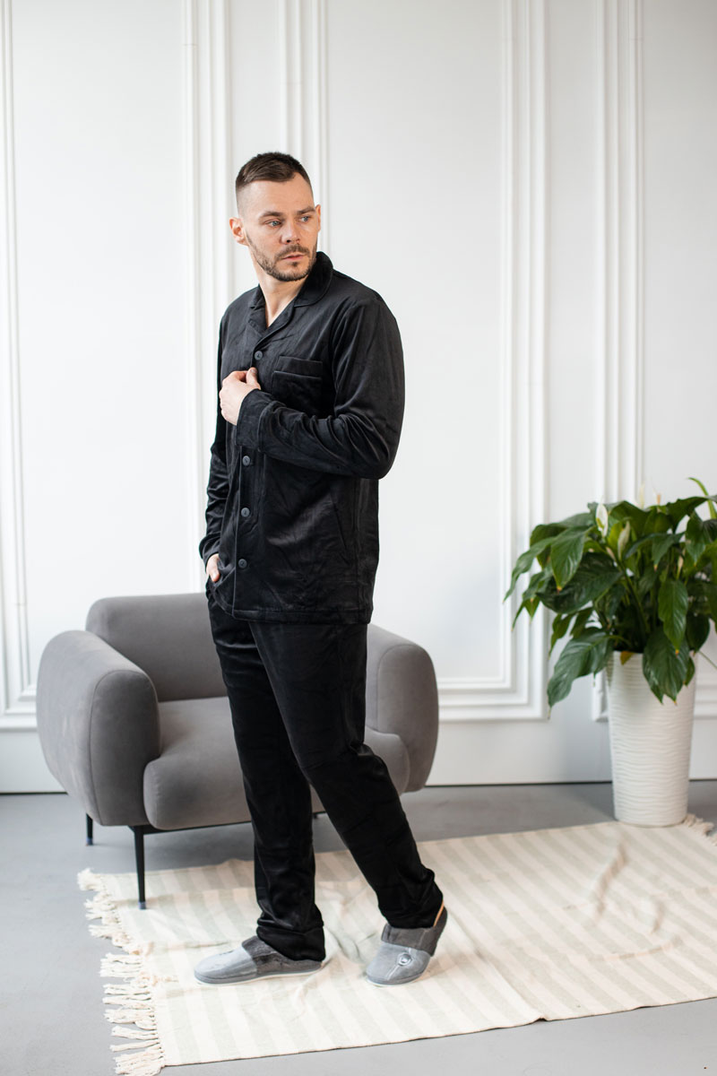 Чоловіча велюрова піжама BO.Brand чорний колір
