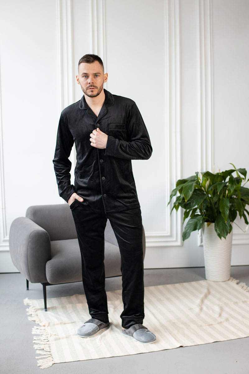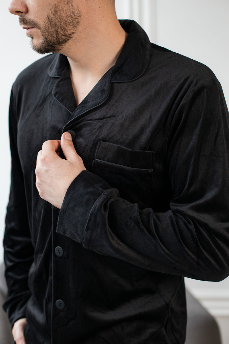 Крій і дизайн цієї піжами створені з думкою про чоловіка, який цінує стиль та комфорт. Класичний чорний колір надає їй елегантності та дозволяє виглядати завжди бездоганно, навіть у моменти відпочинку.