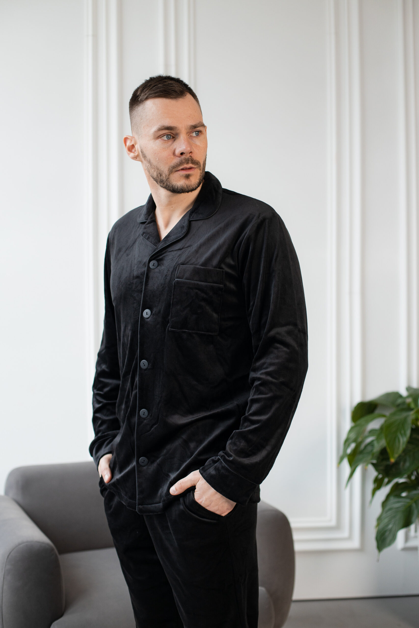OТепла чоловіча піжама BO.Brand велюр чорна — це поєднання класу та комфорту, що додасть вашим ночам неповторної розкоші. Виготовлена з найкращого якісного велюру, ця піжама вразить вас своєю м’якістю та неймовірною приємністю на дотик.