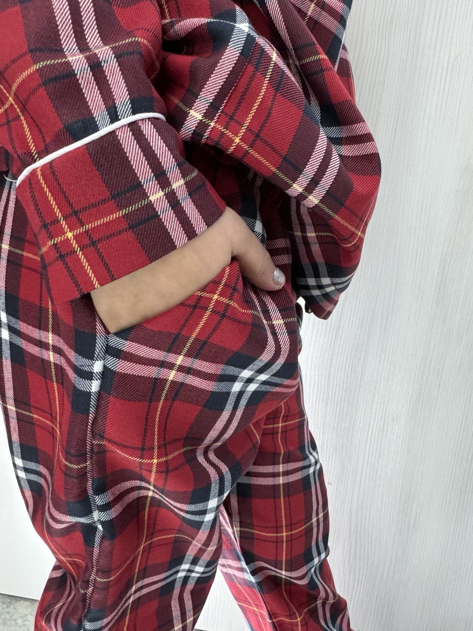 Дизайн цієї піжами також вражає. Вона виконана у чарівному червоному кольорі з клітинкою, що додає їй стильний і модний вигляд. Зручний крій і практичні кишені роблять цю піжаму ідеальною для щоденного використання.