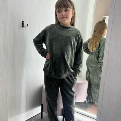 Светри та штани виготовлені з м’якого та ніжного велюру, який приємний на дотик та зберігає тепло, а при цьому не обмежує рухів дитини. Зручний крій та м’яка резинка на поясі забезпечують максимальний комфорт під час сну.