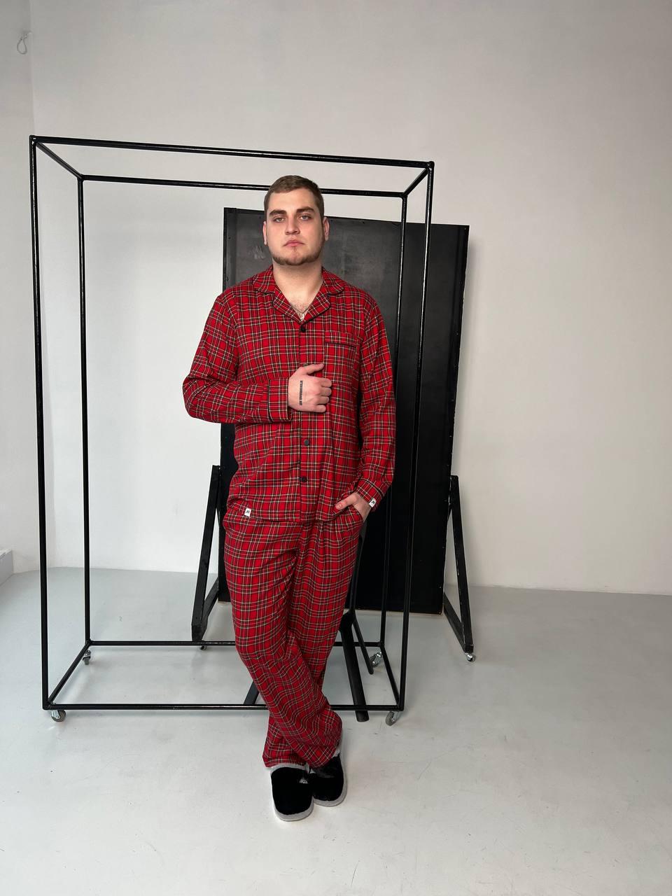 Сімейні піжами BO.Brand червоні у клітинку (чоловіча та жіноча піжами, котон)