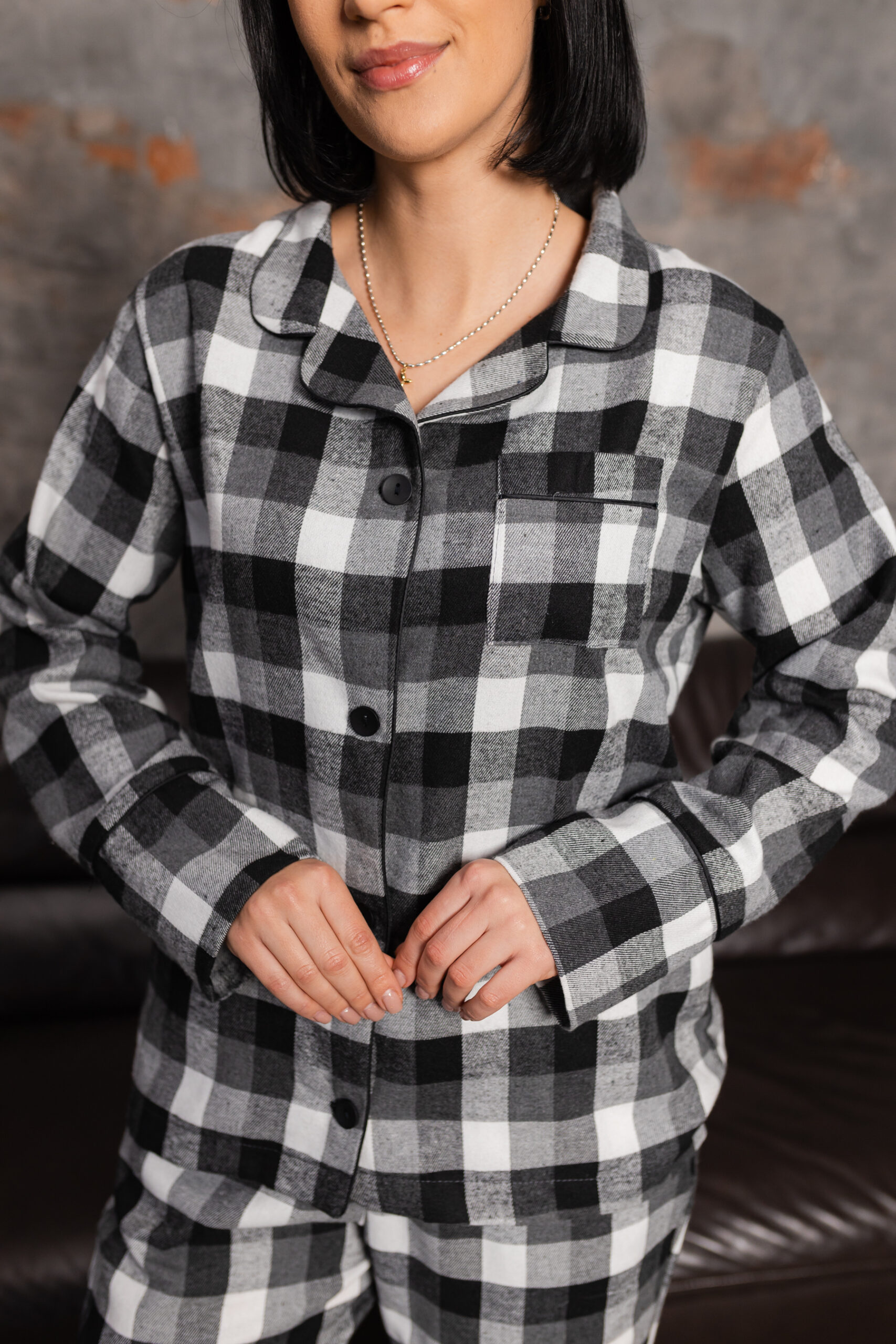 Парні піжами у сіру клітинку BO.Brand на бавовняній основі — це не лише одяг для сну, а справжній образ життя, який поєднує в собі комфорт, стиль та практичність.