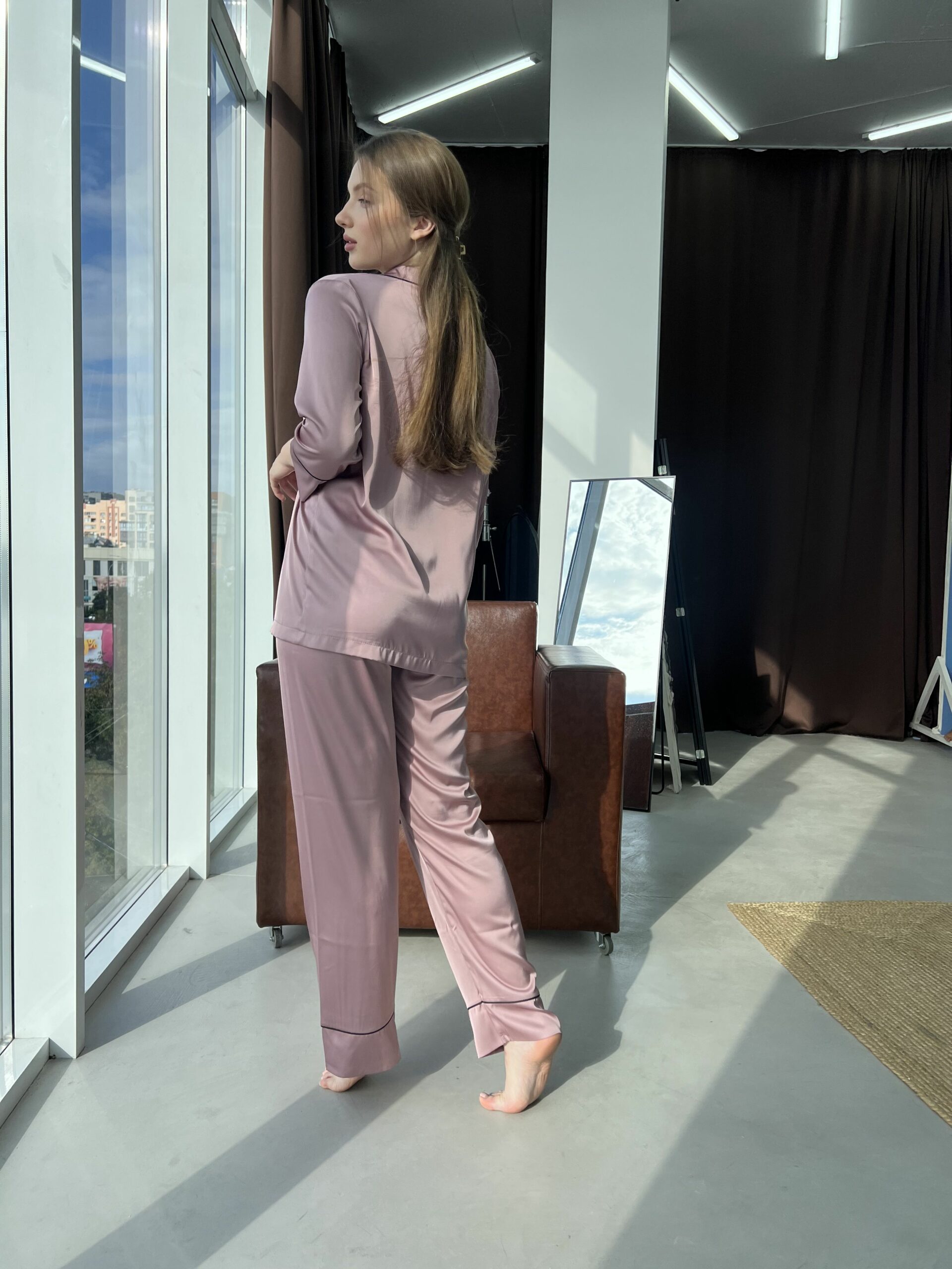 Піжама поставляється з елегантним поясом і зручними штанами, що надає їй сучасний та стильний вигляд. Дизайнерські деталі та уважний підхід до кожної штуки роблять цю піжаму справжньою перлиною вашого гардеробу.