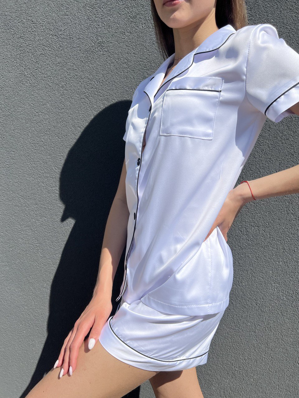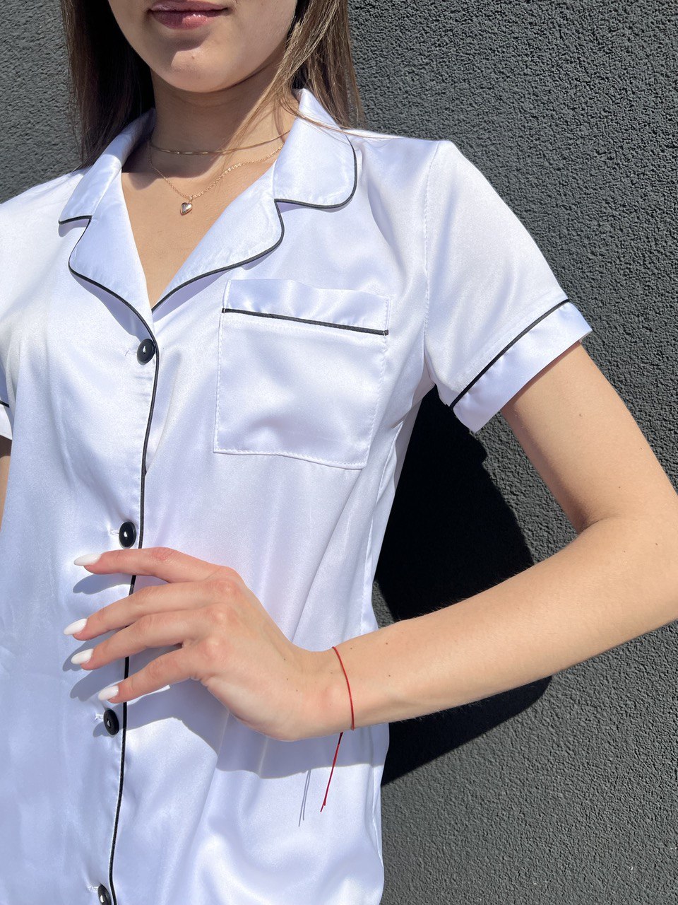 Піжама жіноча BO.Brand двійка білий колір, сорочка і шорти – це спокій та комфорт, об’єднані в одному неймовірно стильному комплекті. Якість і елегантність об’єднались в цій чудовій сорочці та шортах кольору бежевого піску.