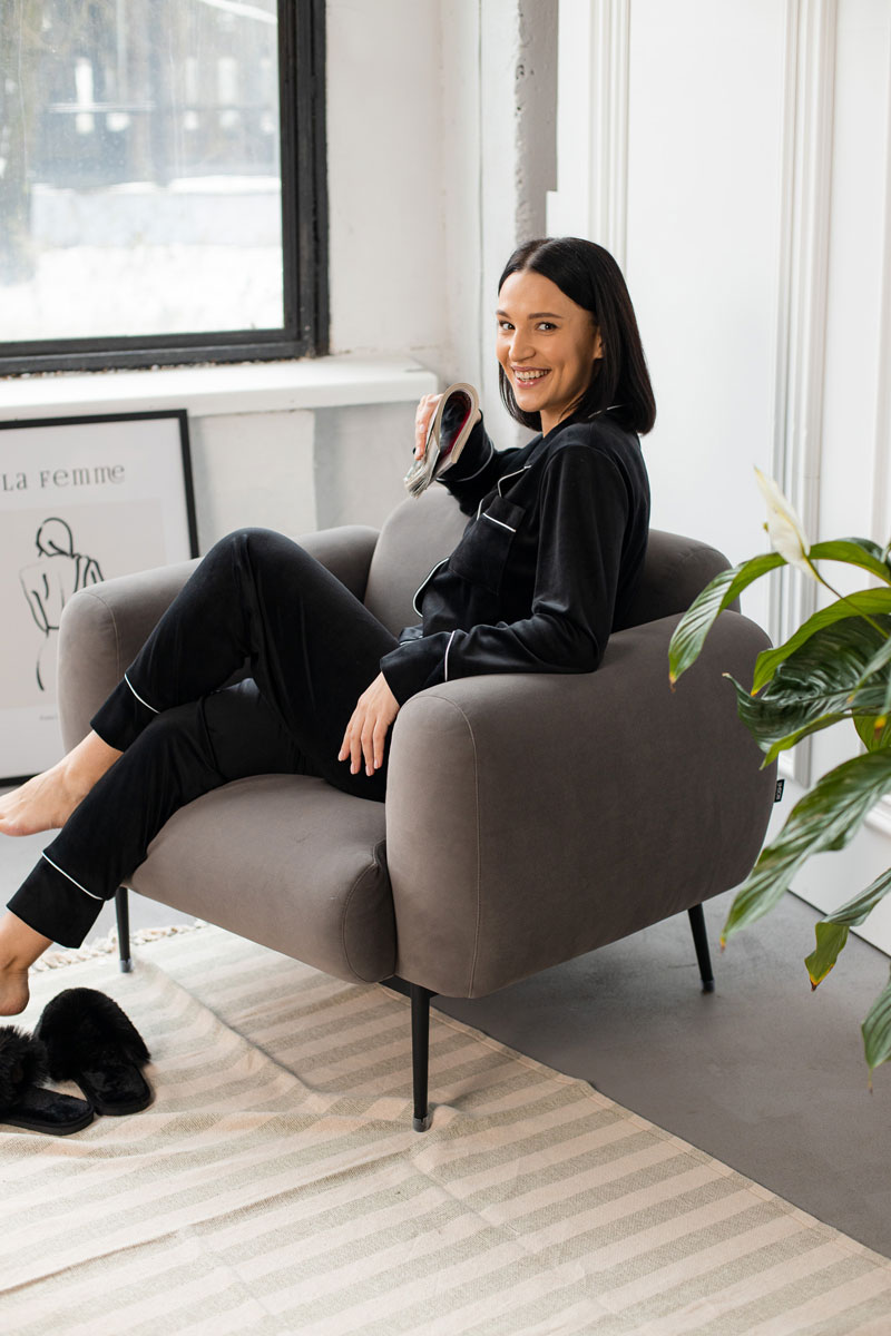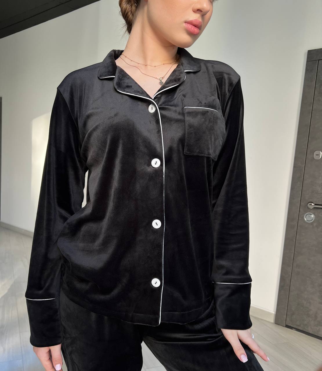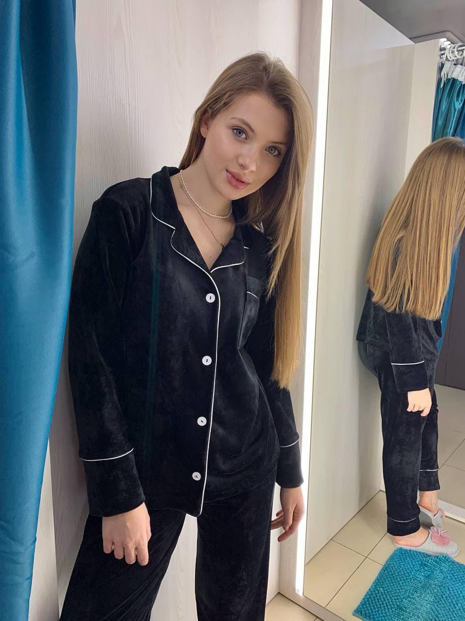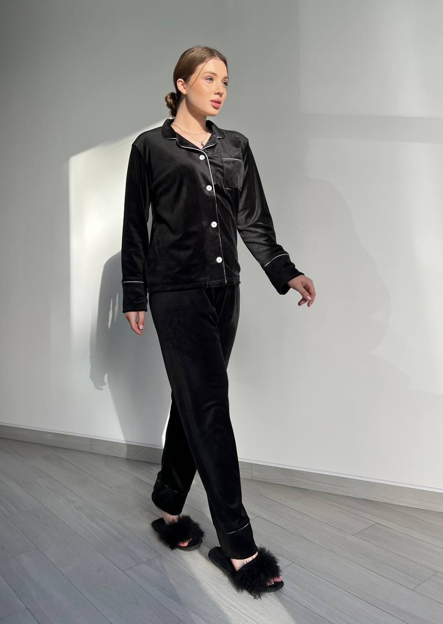 Піжама жіноча BO.Brand двійка велюрова, чорна