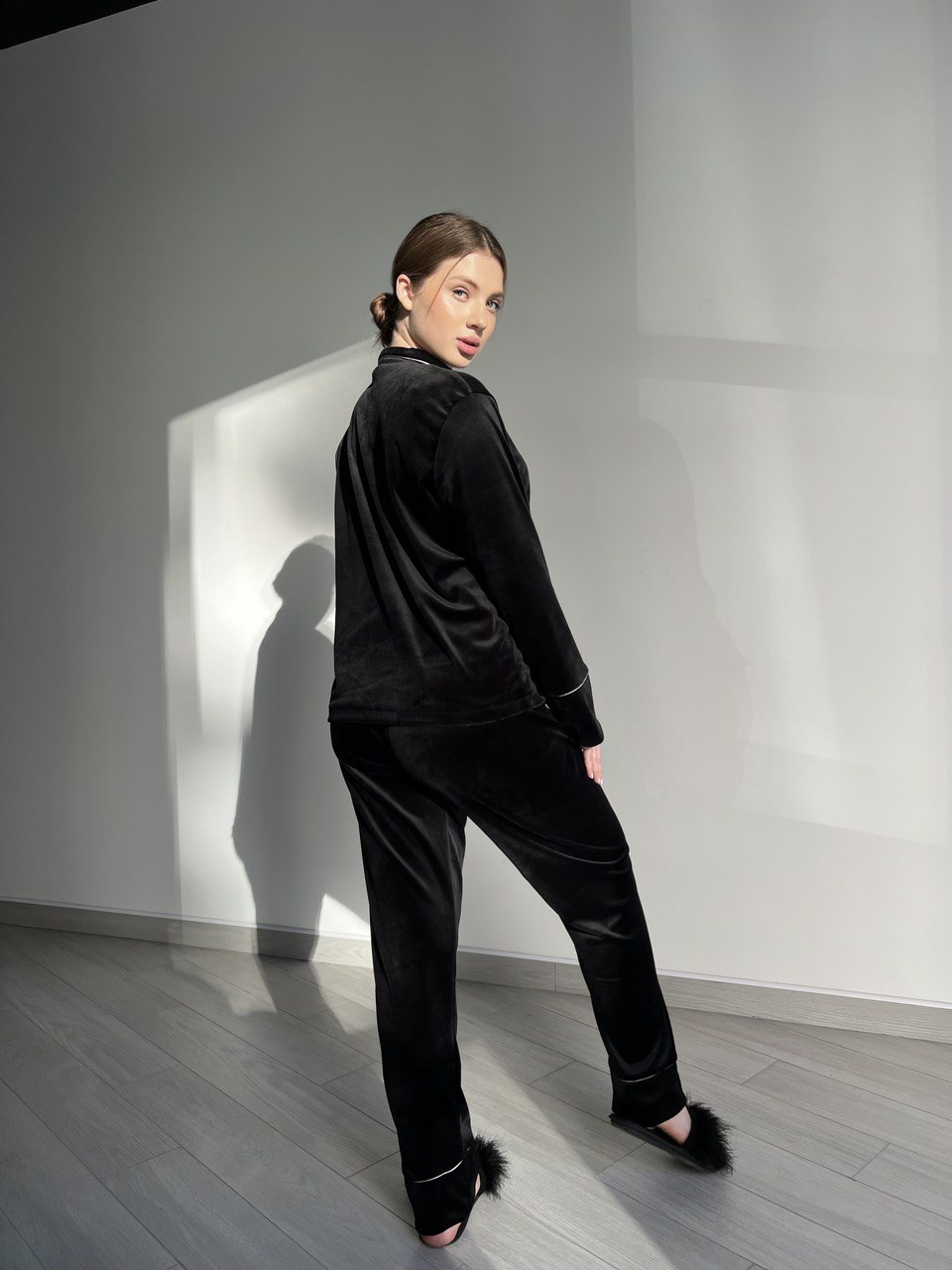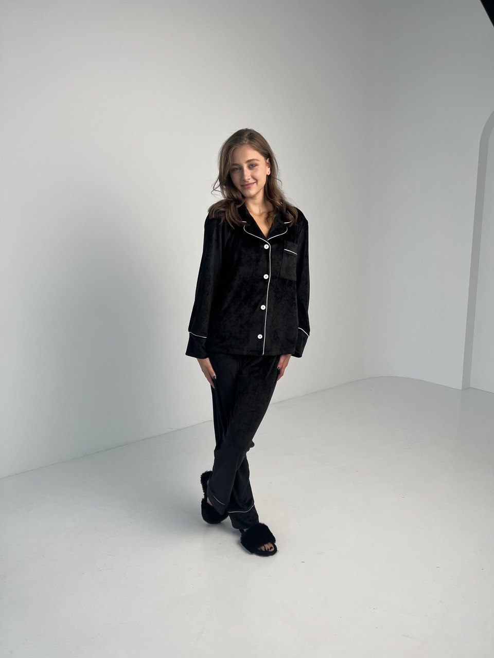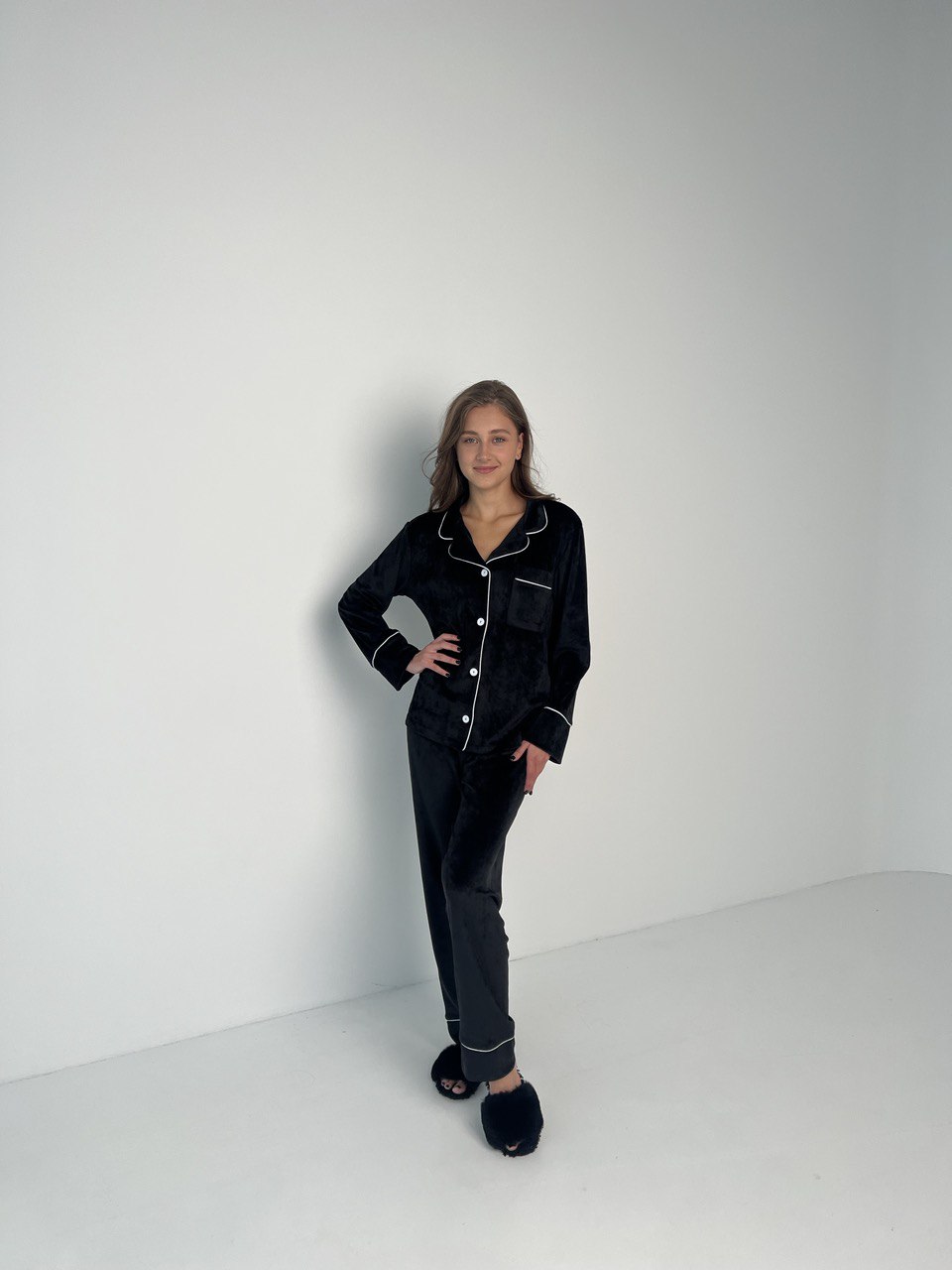 Піжама жіноча BO.Brand двійка велюрова, чорна