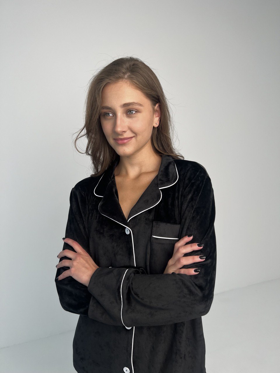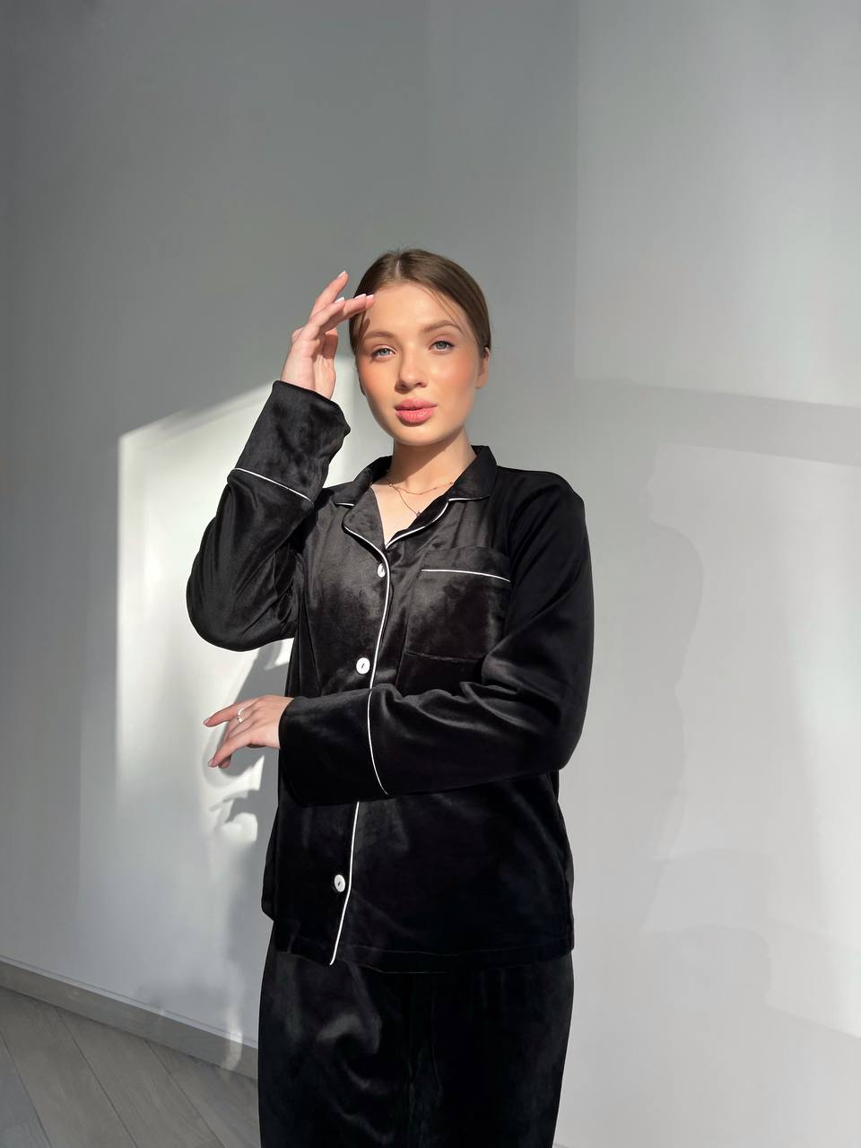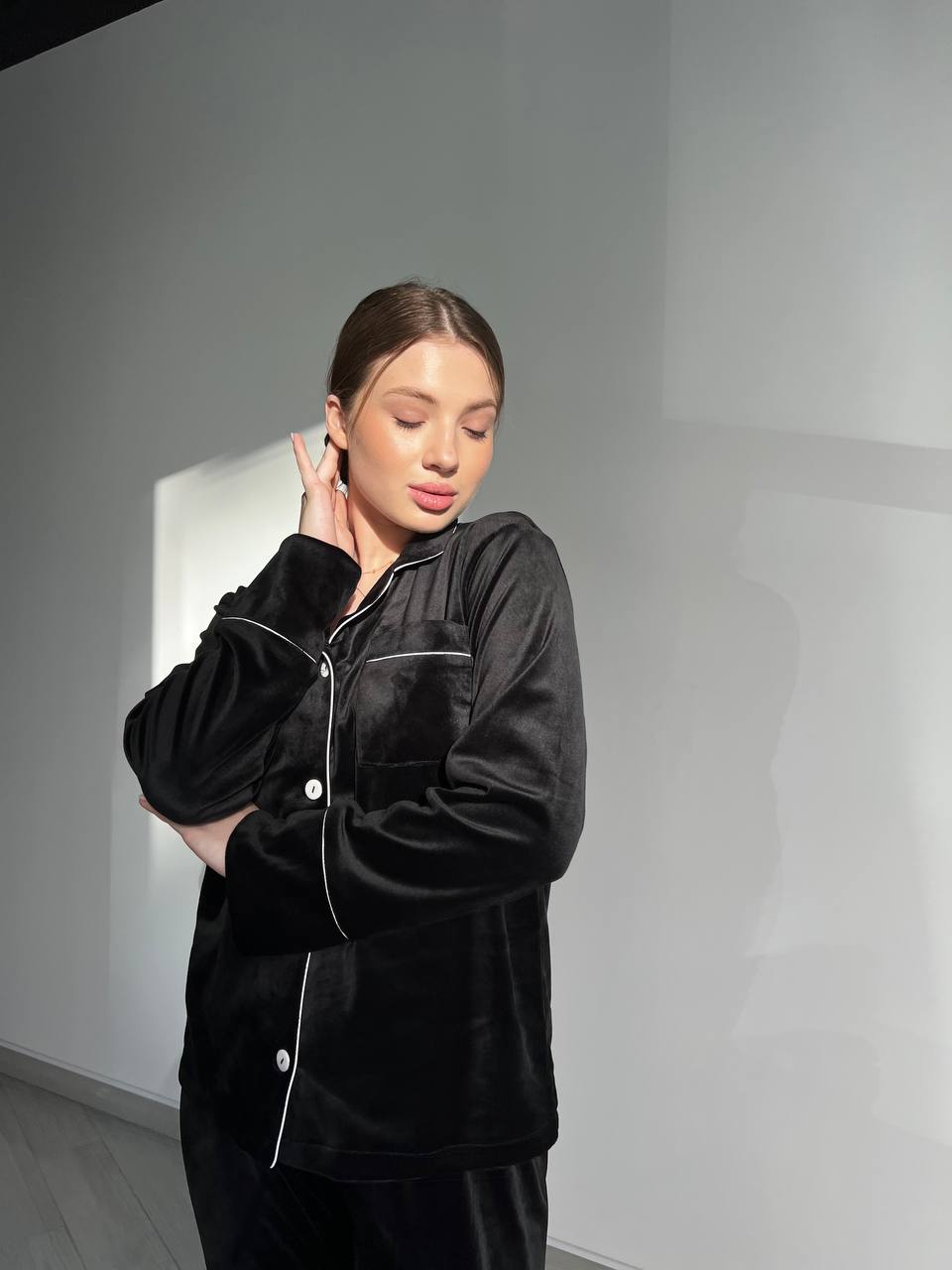 Ця жіноча велюрова піжама стане вашим найкращим спільником для спокійного сну і відпочинку вдома. Не втрачайте нагоду почувати себе особливою щоразу, коли одягаєте цю піжаму. Насолоджуйтеся комфортом та стилем з “Двійкою” від нашого бренду.
