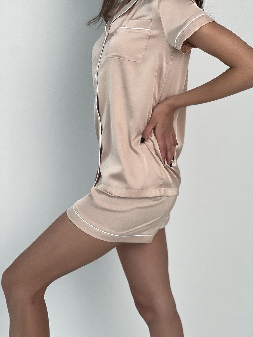 Піжама жіноча BO.Brand шовк Армані (сорочка і шорти, колір бежевий) Оригінальна ціна: 850 ₴.Поточна ціна: 750 ₴.