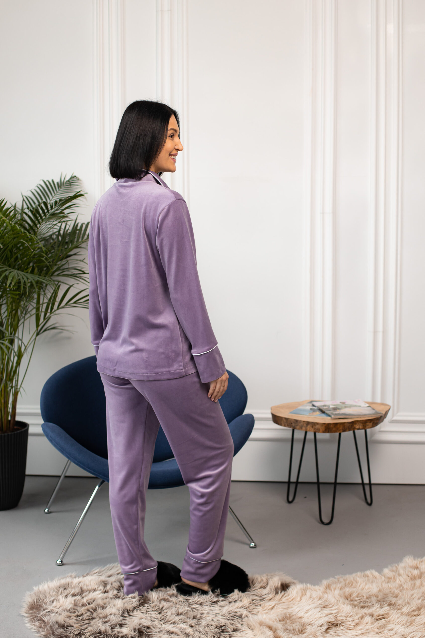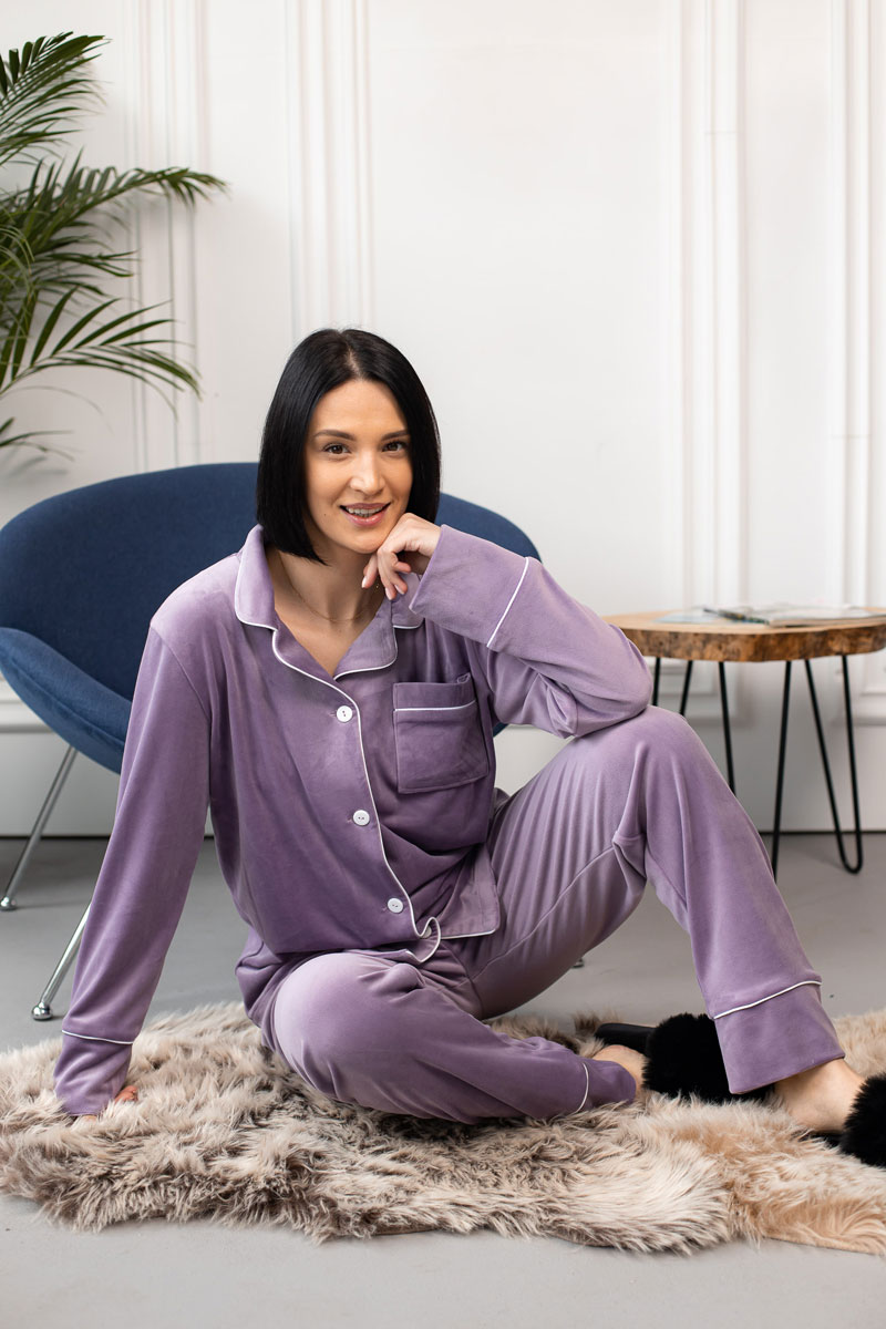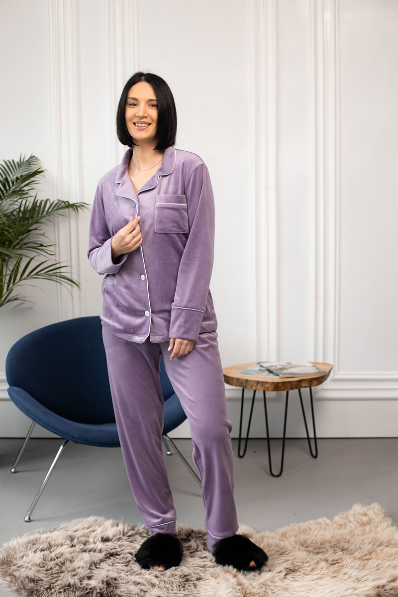 Ця піжама ідеально підходить для холодних зимових ночей або для затишних вечірніх годин перед телевізором. Її стильний дизайн і вишукані деталі роблять її найкращим вибором для жінок, які цінують комфорт і елегантність. Даруйте собі розкіш та зручність з цією чудовою жіночою піжамою на гудзиках зі штанами.