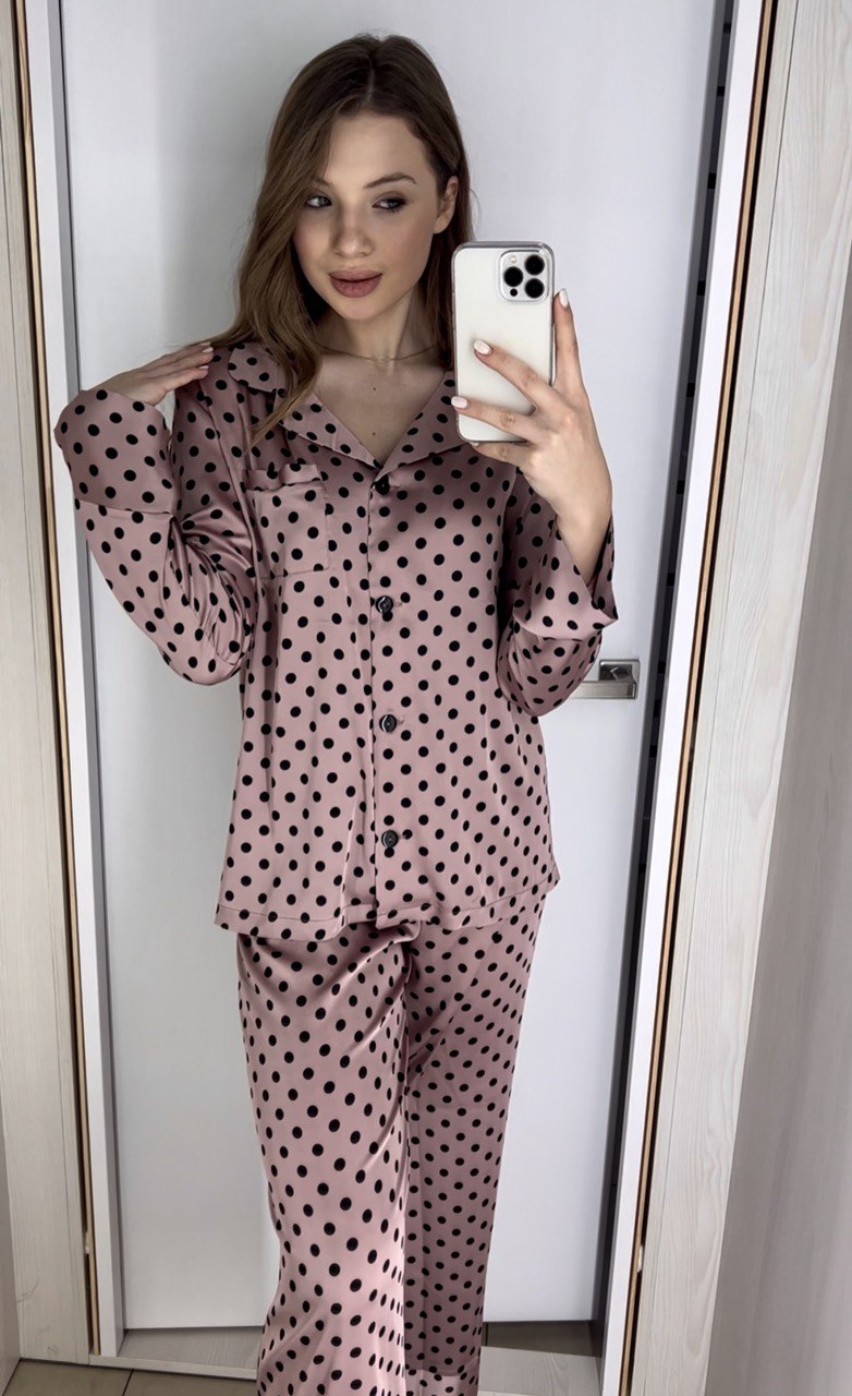 Вибір шовкового матеріалу додає піжамі ніжності та розкоші, підкреслюючи вашу жіночність та елегантність. Мокко — це колірна палітра, яка символізує тепло та розкіш, ідеально підходить для вечірніх моментів відпочинку.