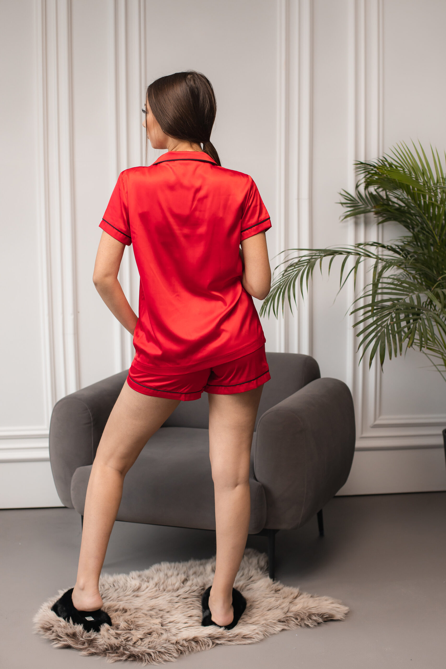 Жіноча піжама BO.Brand двійка складається з двох частин: блузи та шортів, обидві в яскравому червоному кольорі, що символізує страсть і сексуальність. Вибираючи цю піжаму, ви обов’язково залишите позаду повсякденні турботи та відпустите своїй жіночій чарівності та внутрішній красі вільний політ.