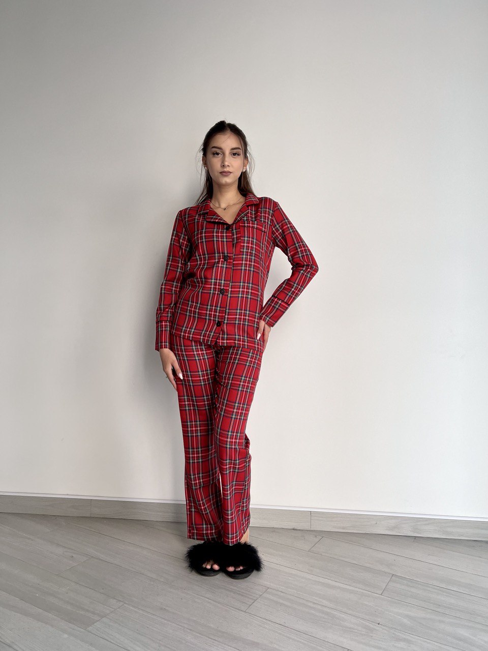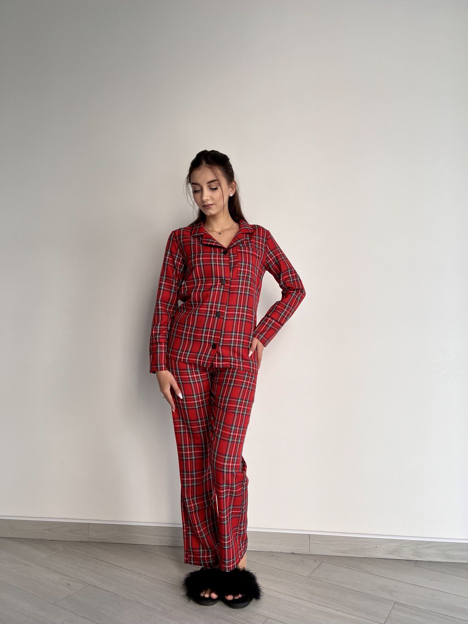 Жіноча піжама BO.Brand котон червона клітинка