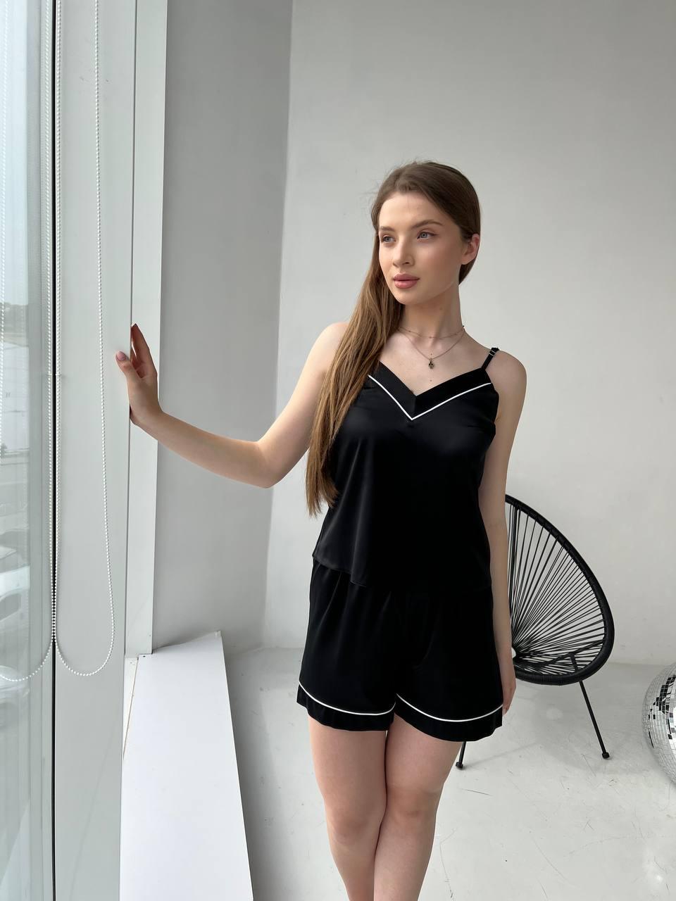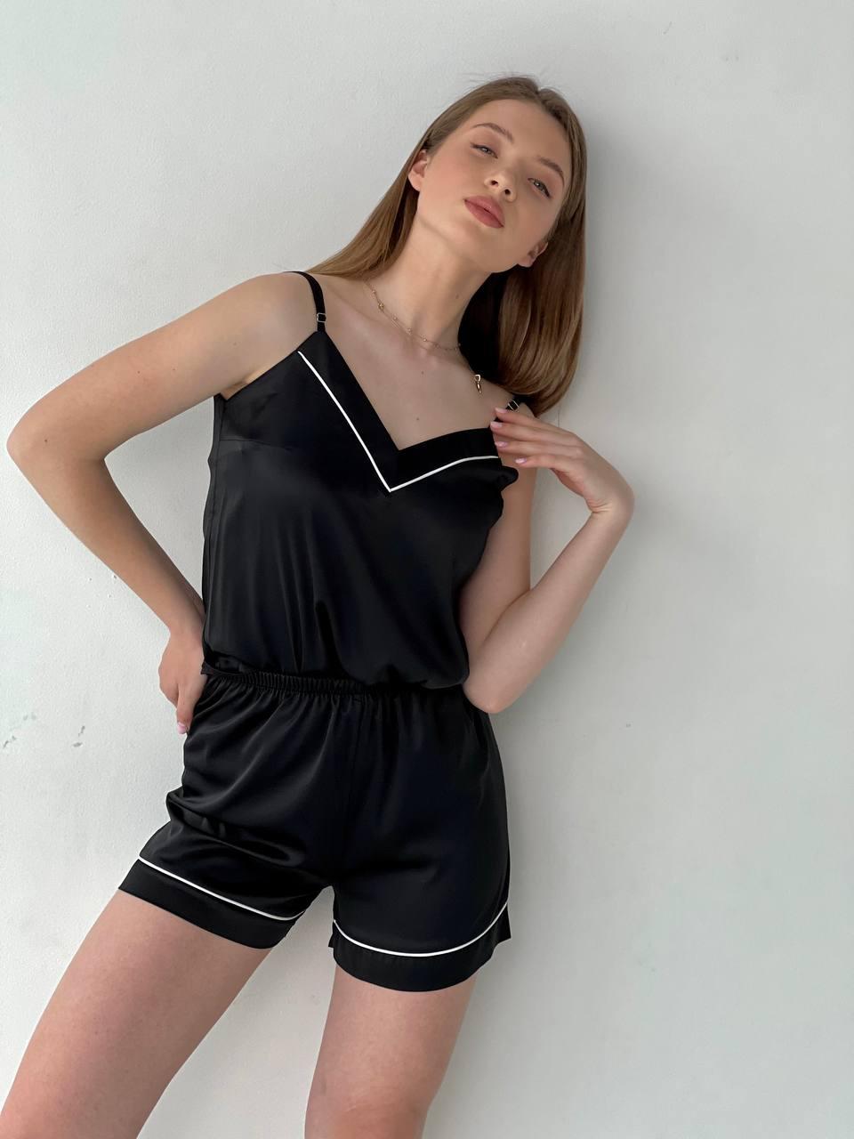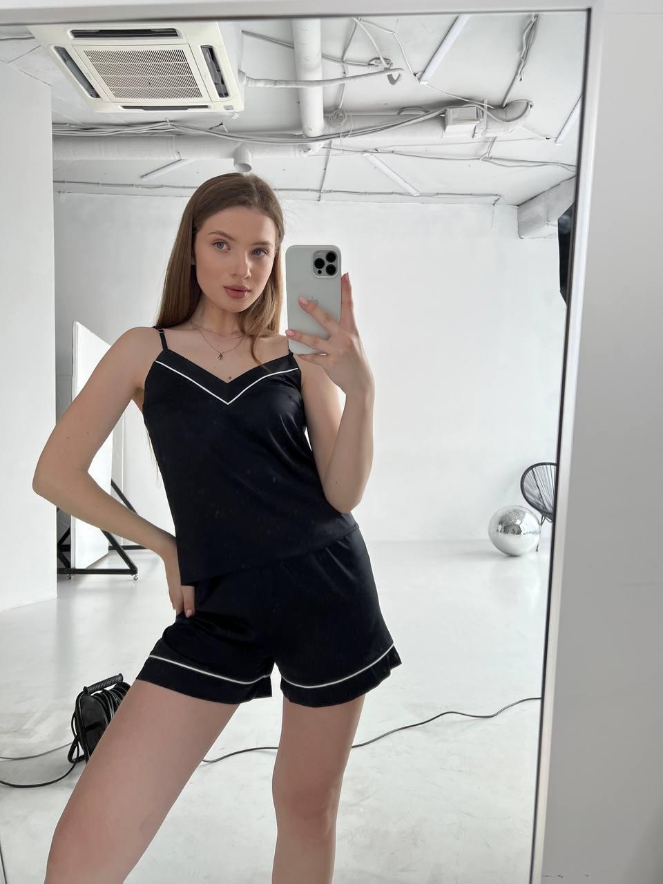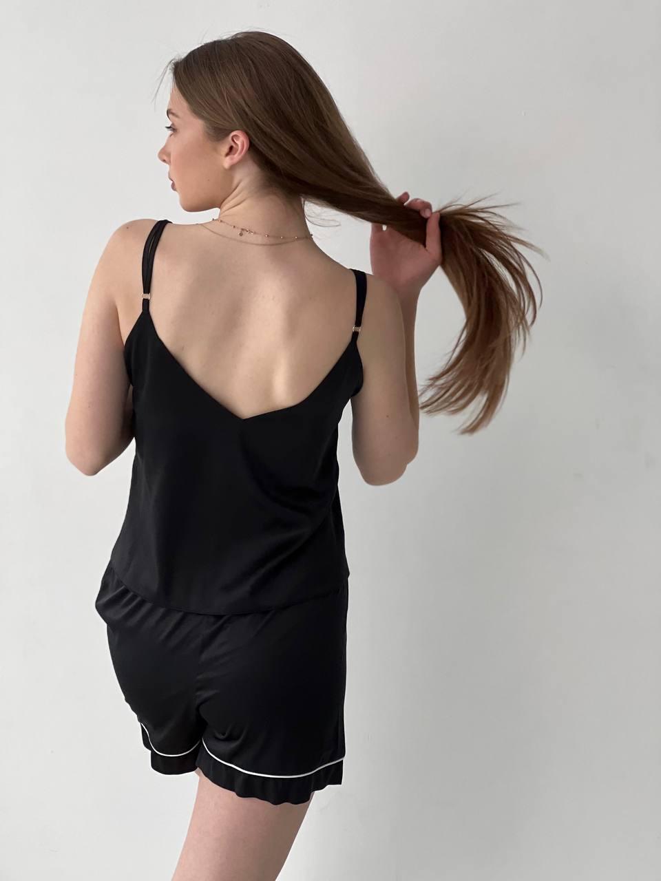 Жіноча піжама чорна BO.Brand майка і шорти, шовк