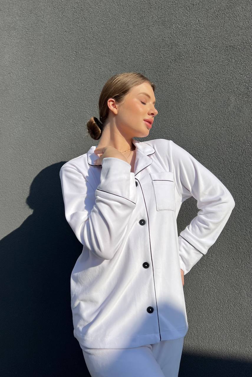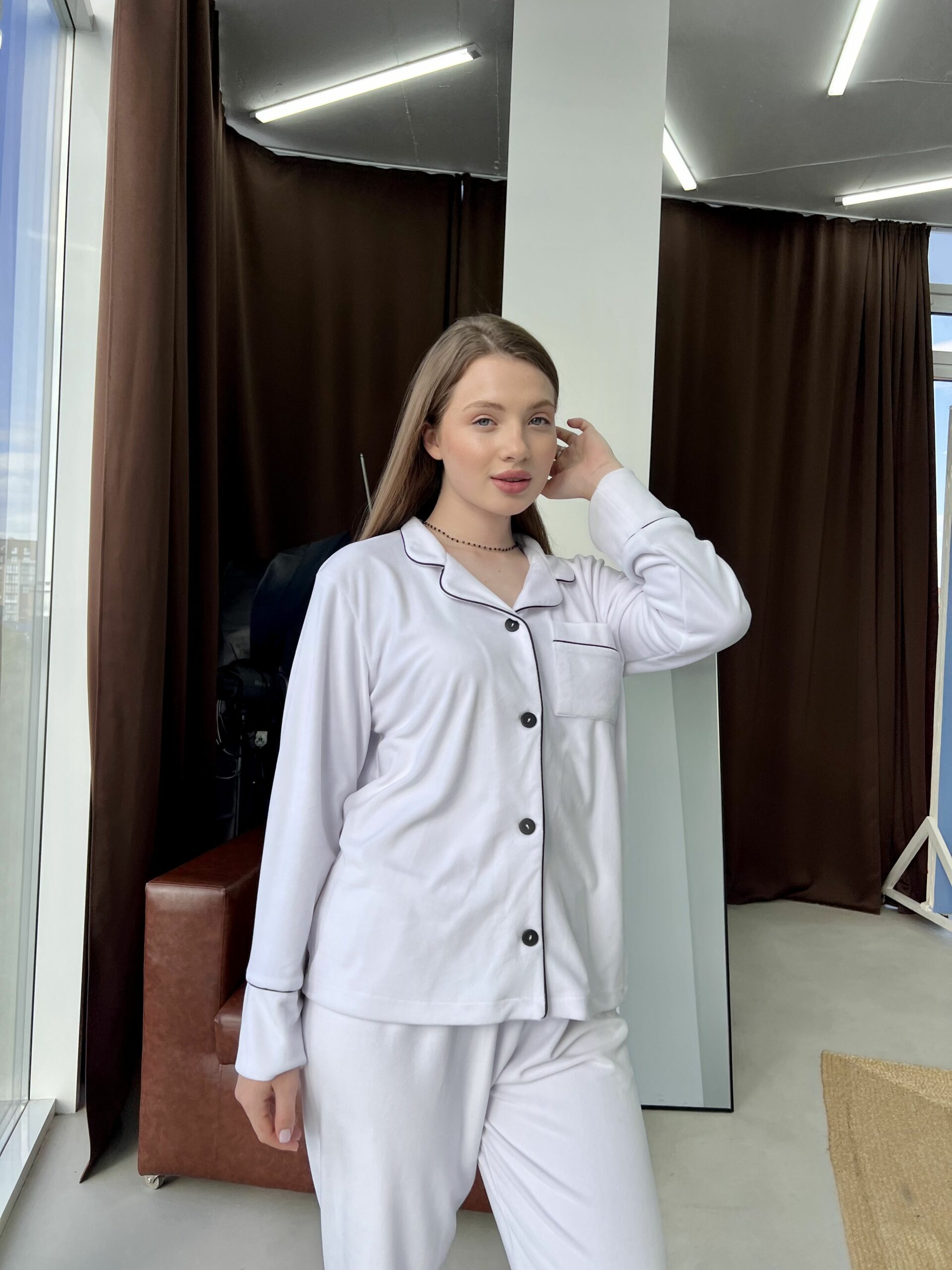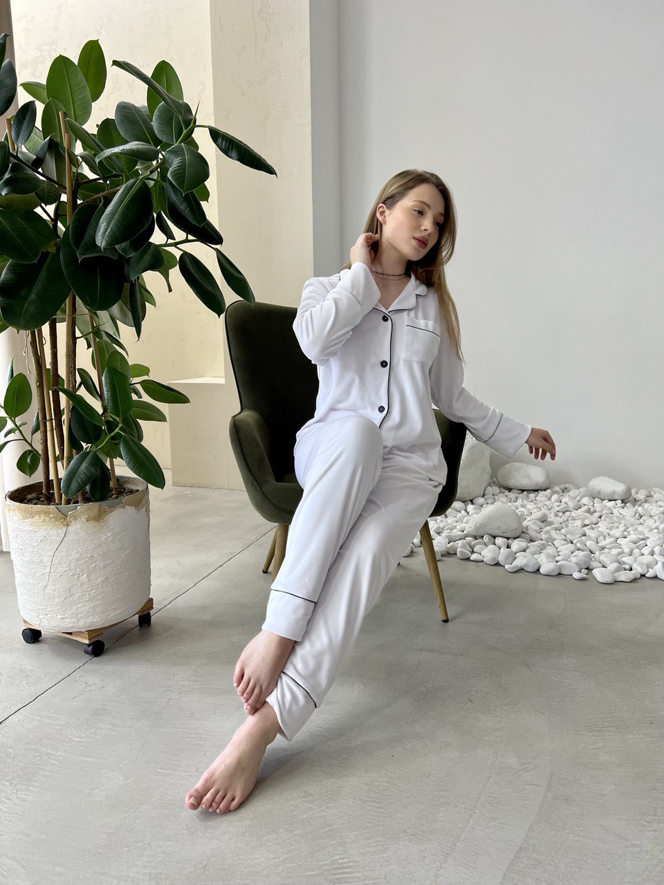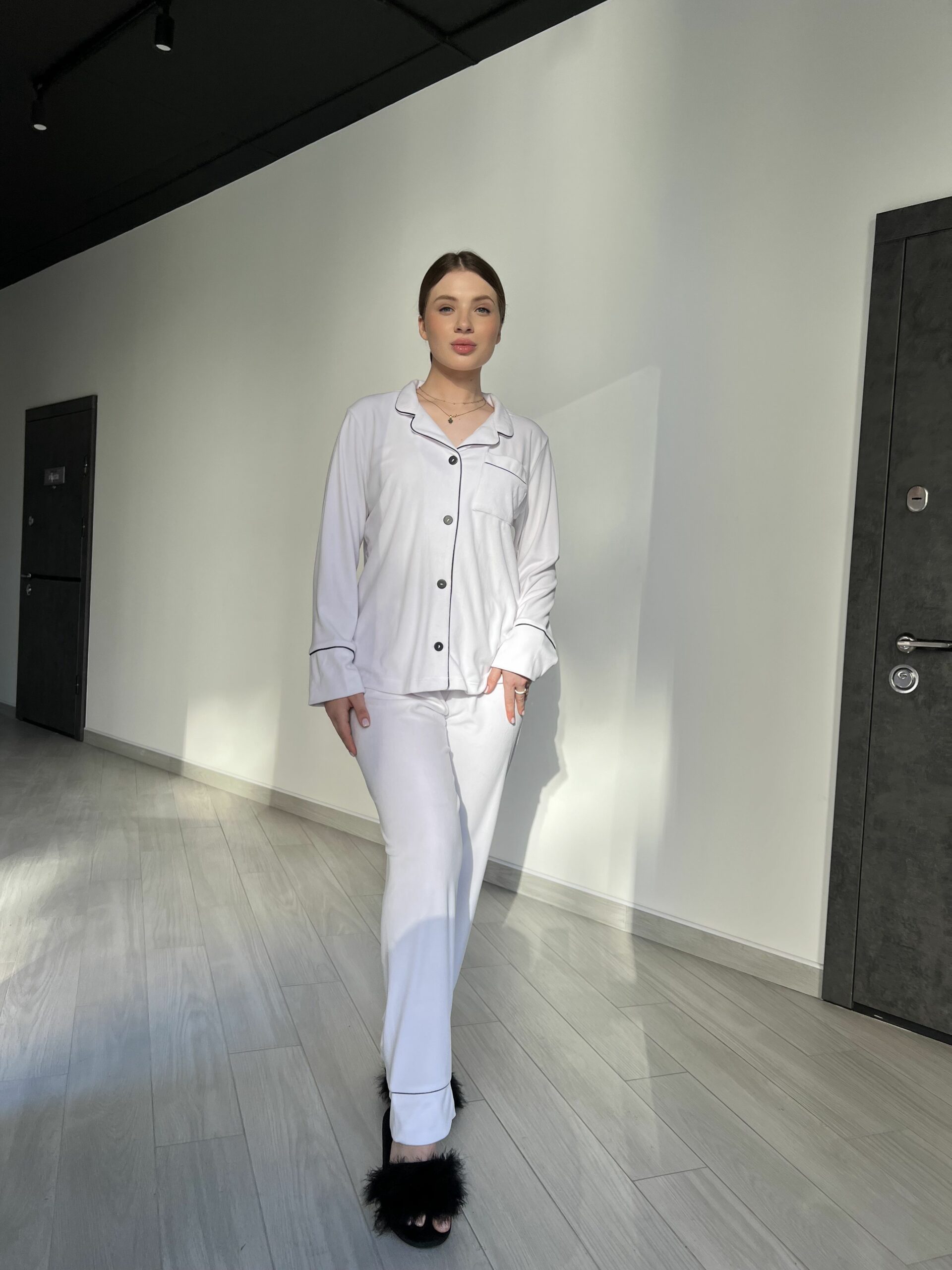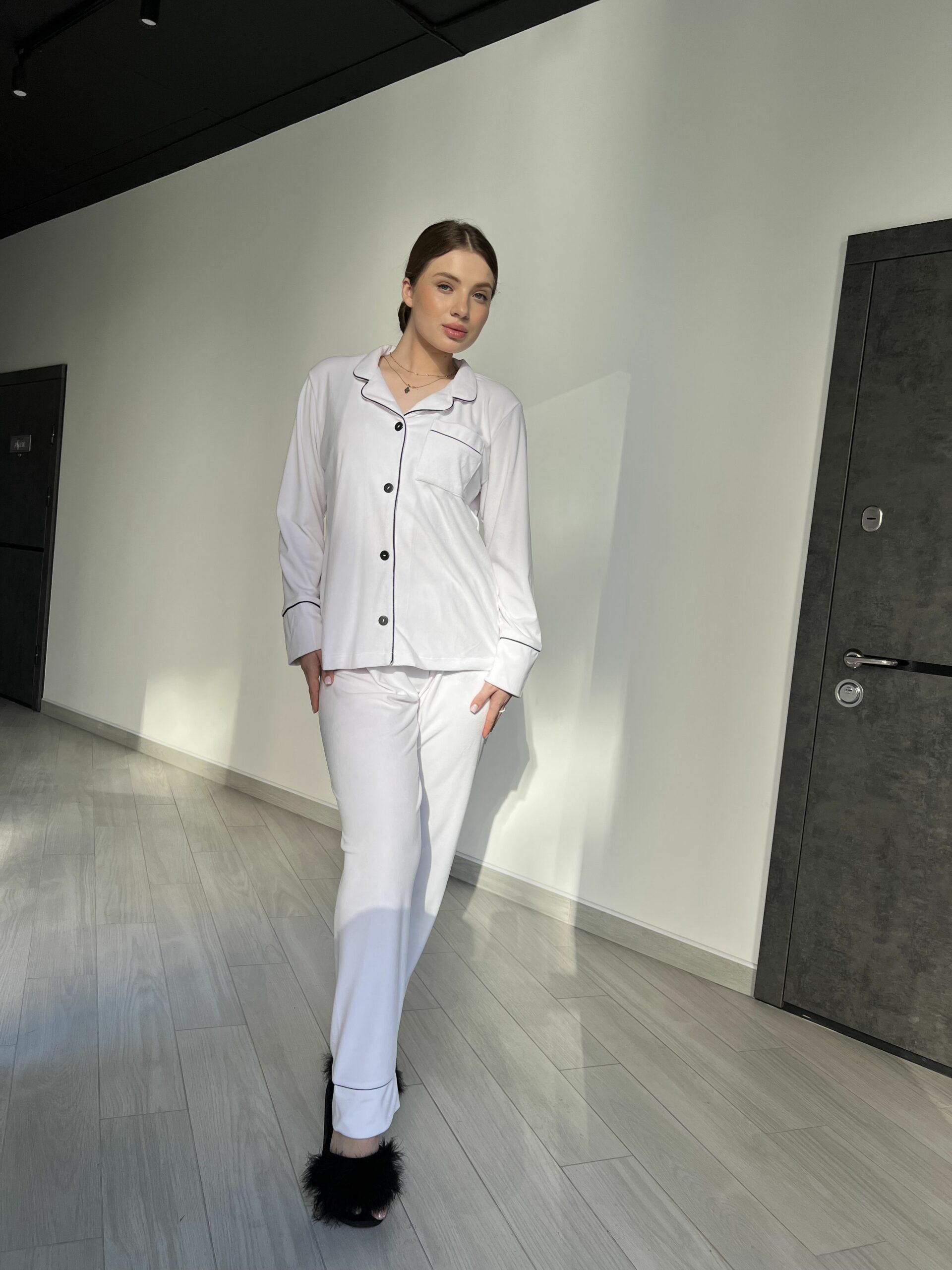 Жіноча піжама BO.Brand на ґудзиках зі штанами, колір білий