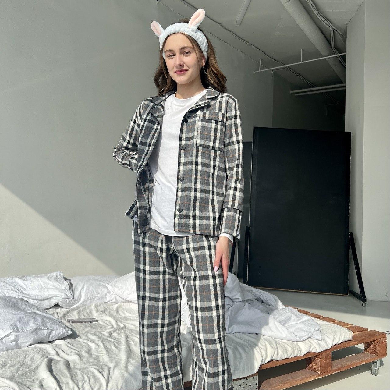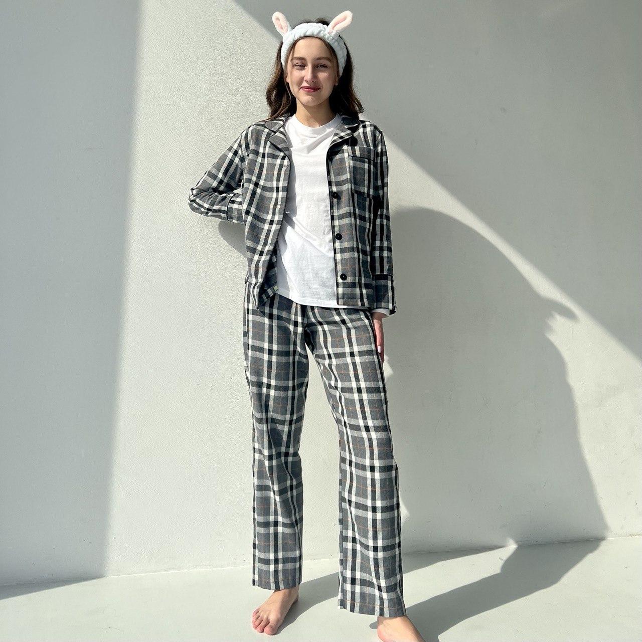 Жіноча піжама у сіру клітинку BO.Brand, натуральна тканина котон