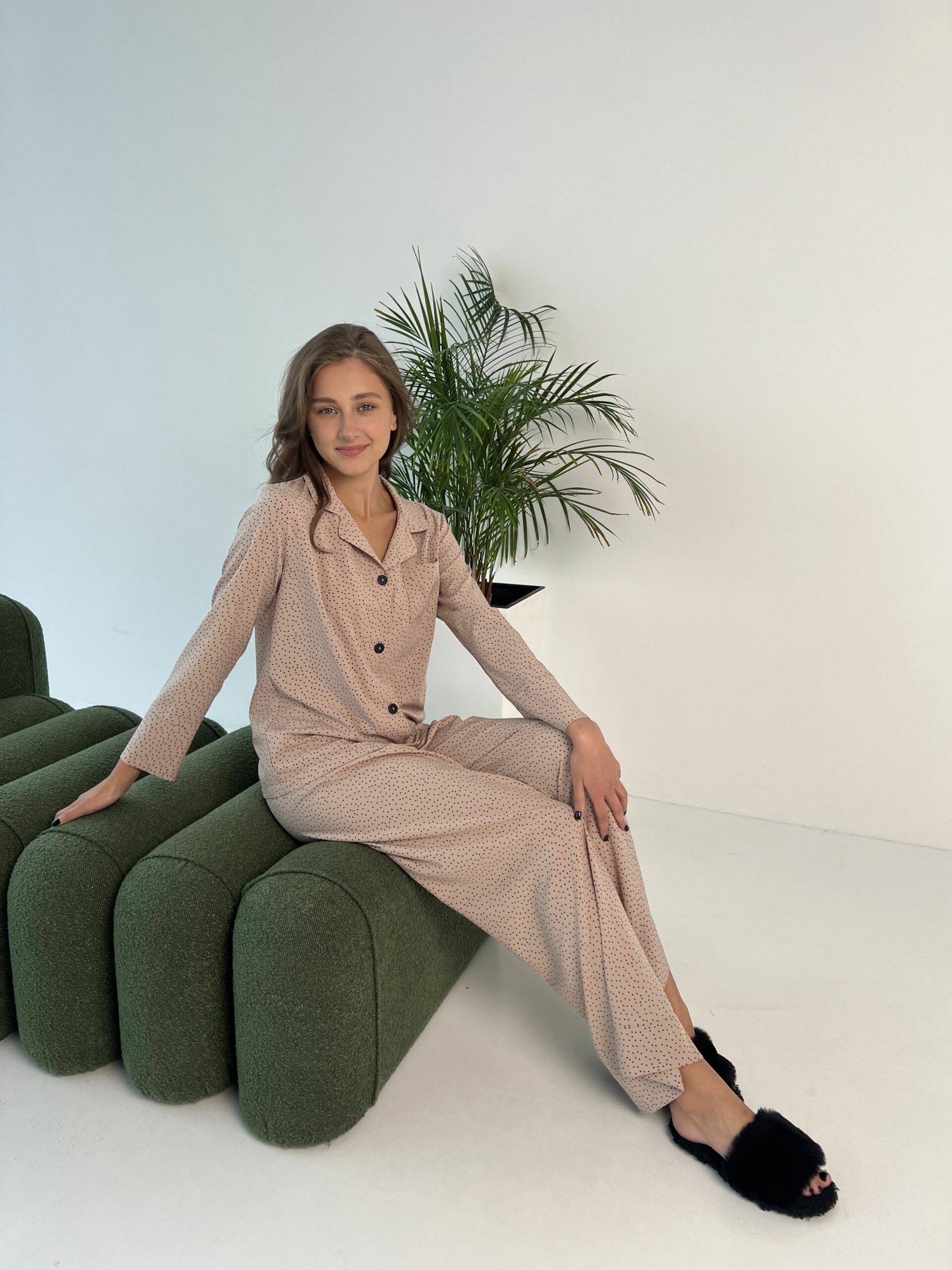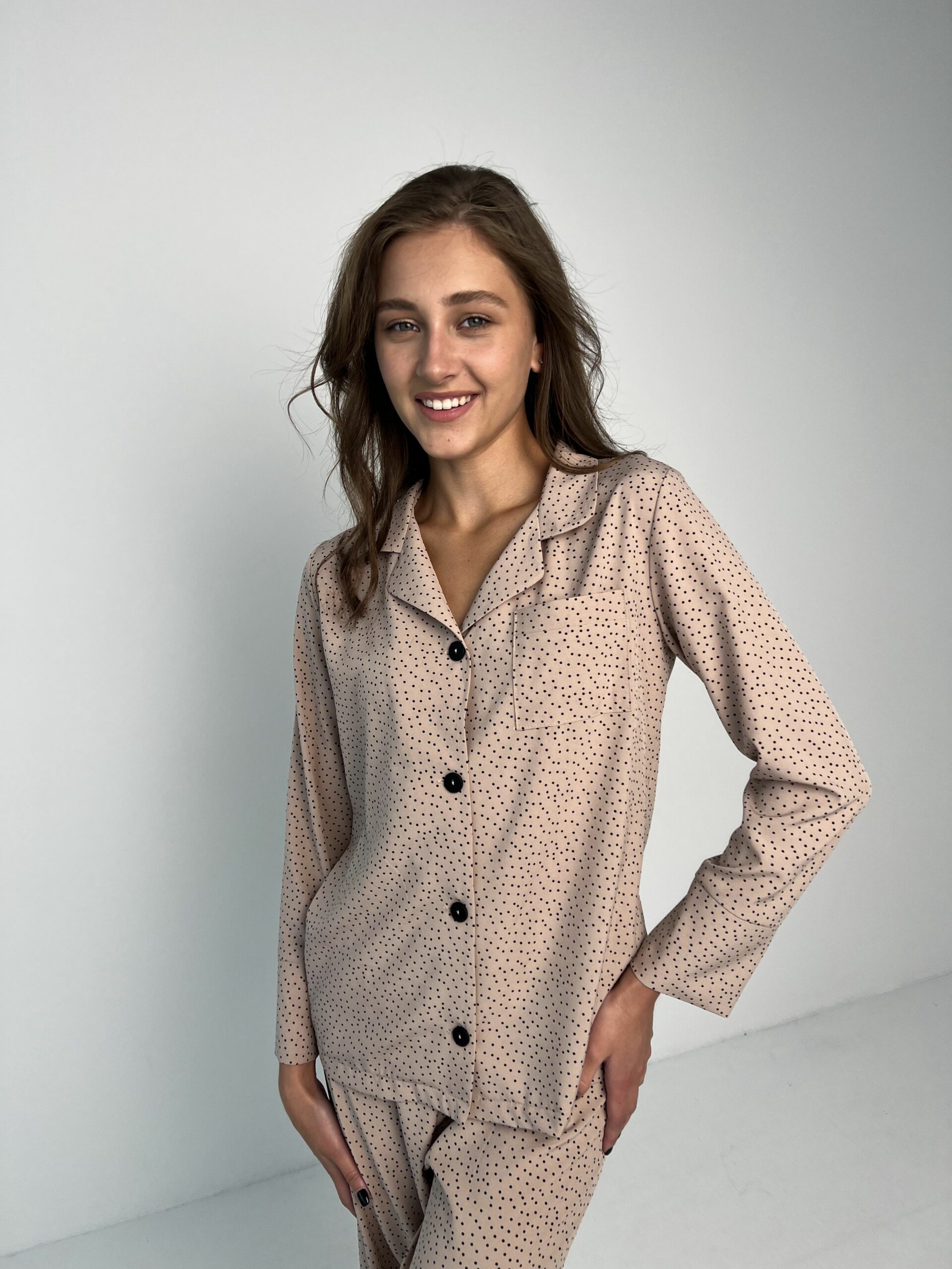 Жіноча піжама BO.Brand комплект сорочка та штани, бежевий
