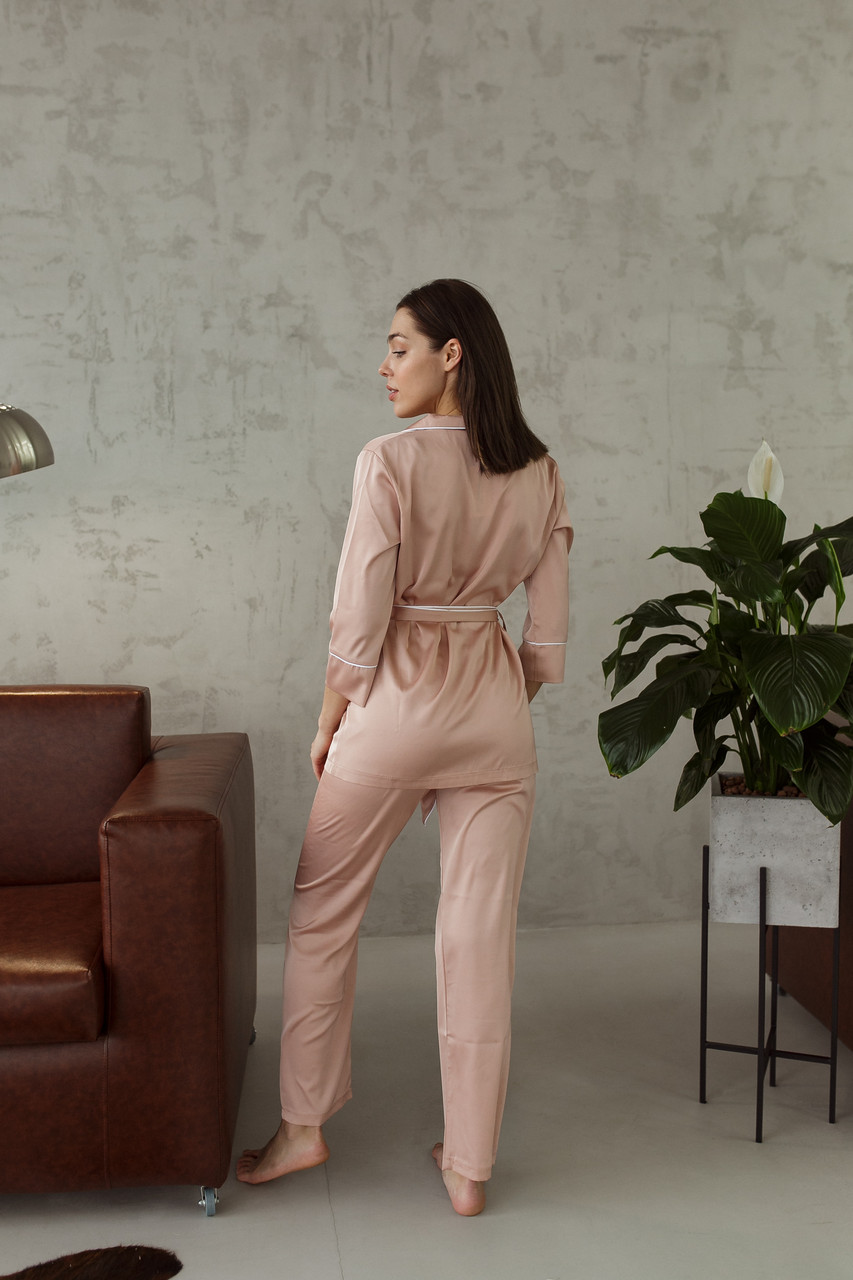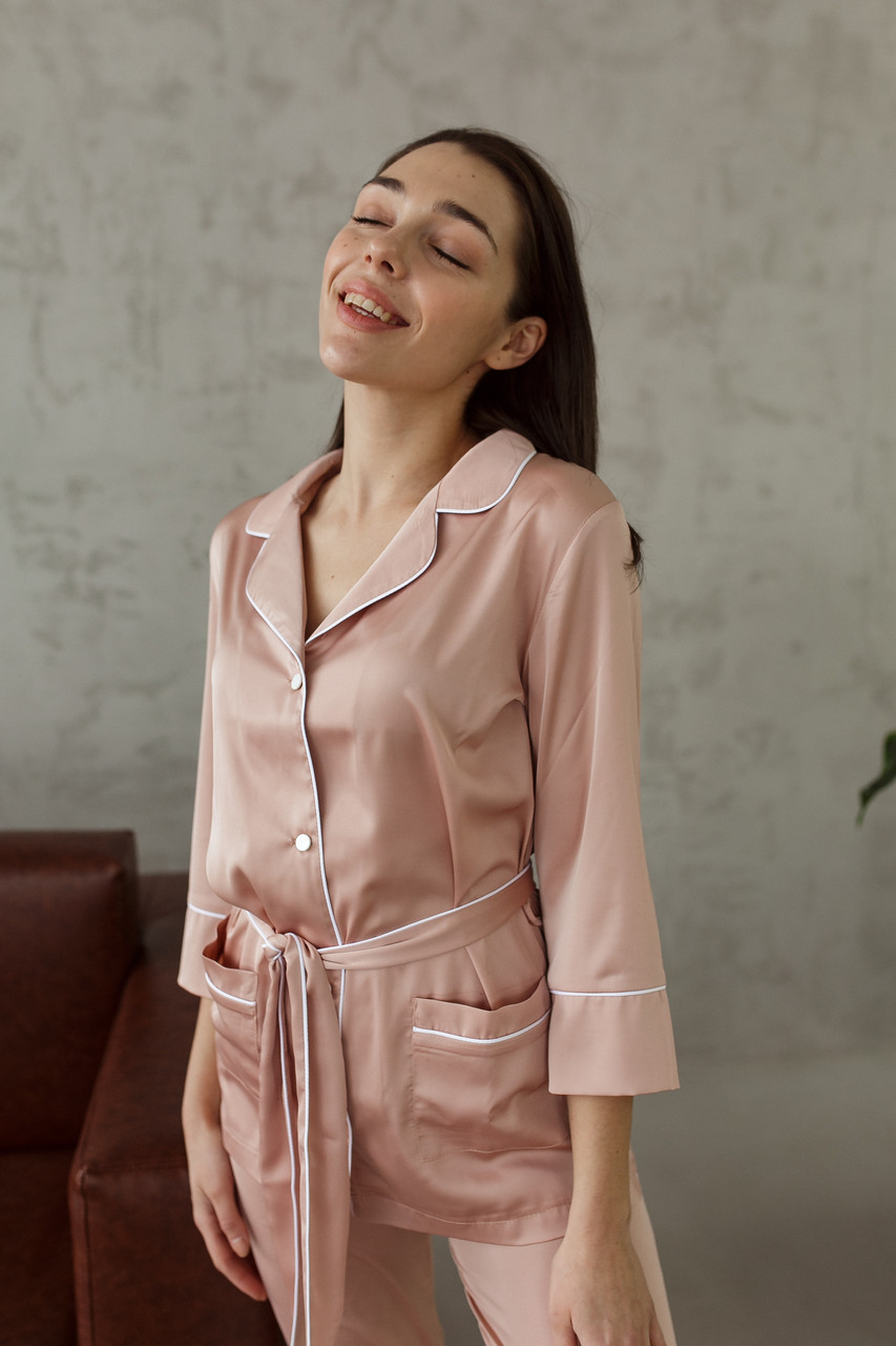 Пудровий відтінок BO.Brand підкреслить вашу ніжність і жіночність, роблячи вас справжньою королевою власного комфортного королівства. Почувайте себе впевнено і стильно в цій чудовій піжамі BO.Brand!