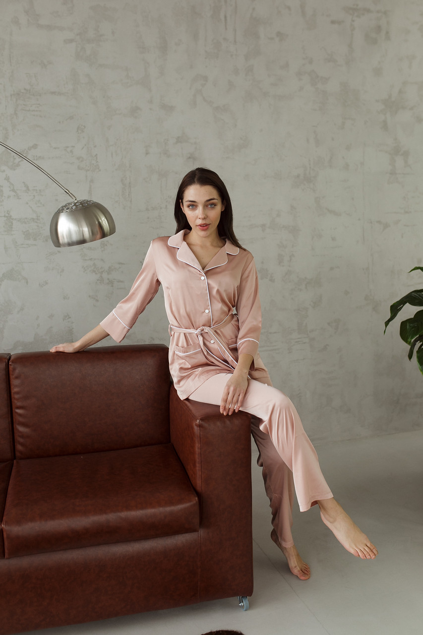 Жіноча піжама BO.Brand всесезонна, сорочка та штани, колір пудровий