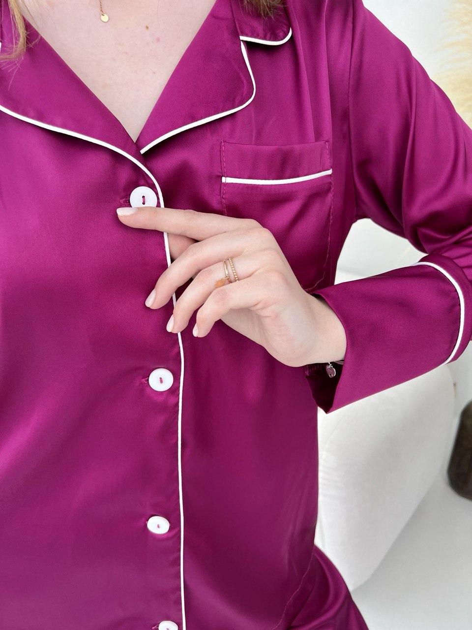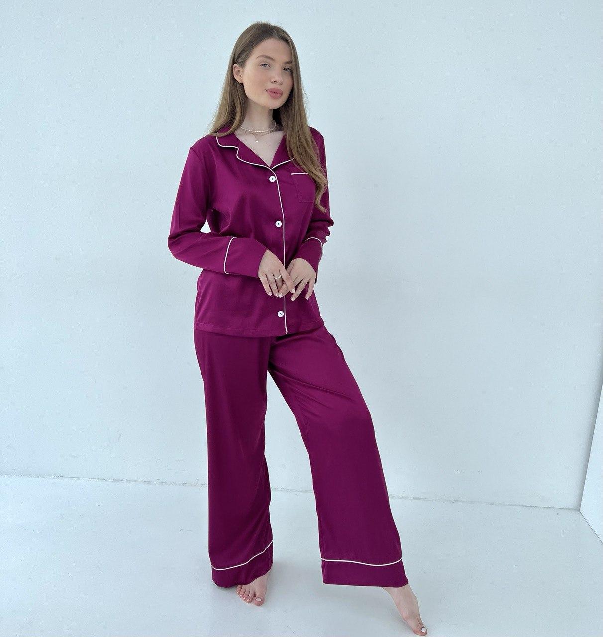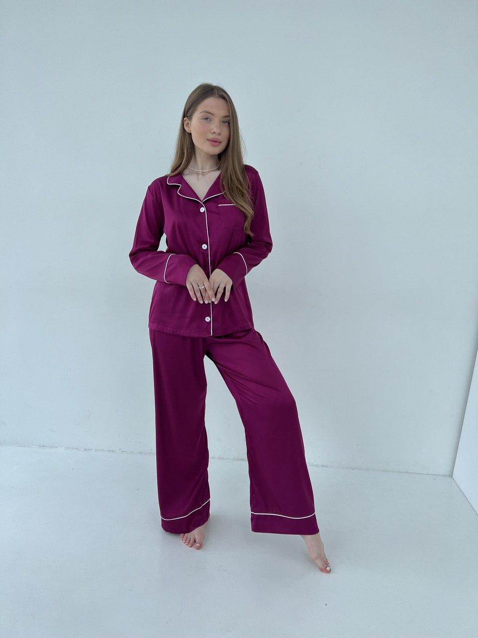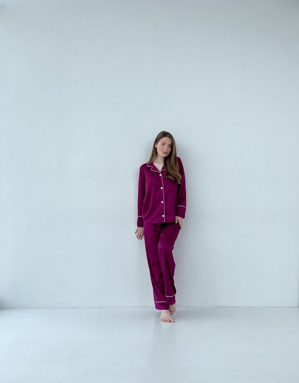 Жіноча піжама BO.Brand 2 в 1, сорочка з довгим рукавом та вільні штани, малиновий