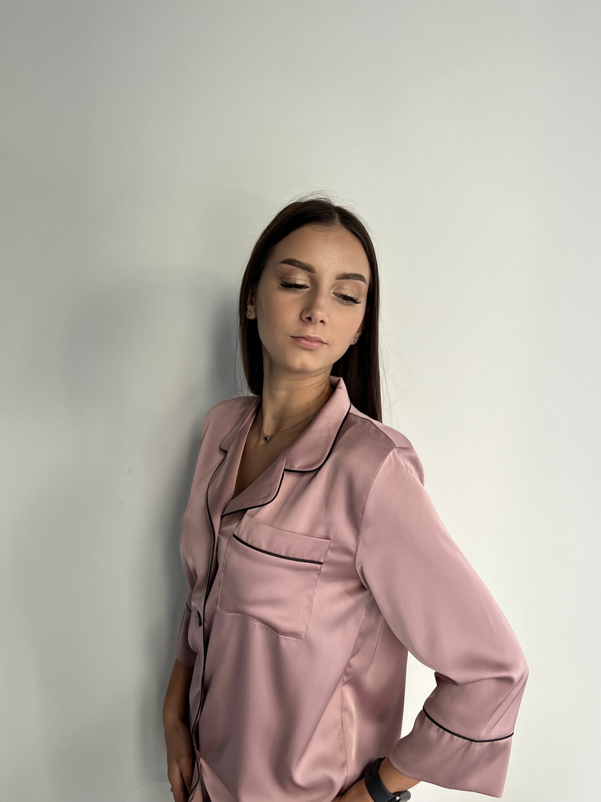 Шовкова жіноча піжама для дому BO.Brand, колір пудровий