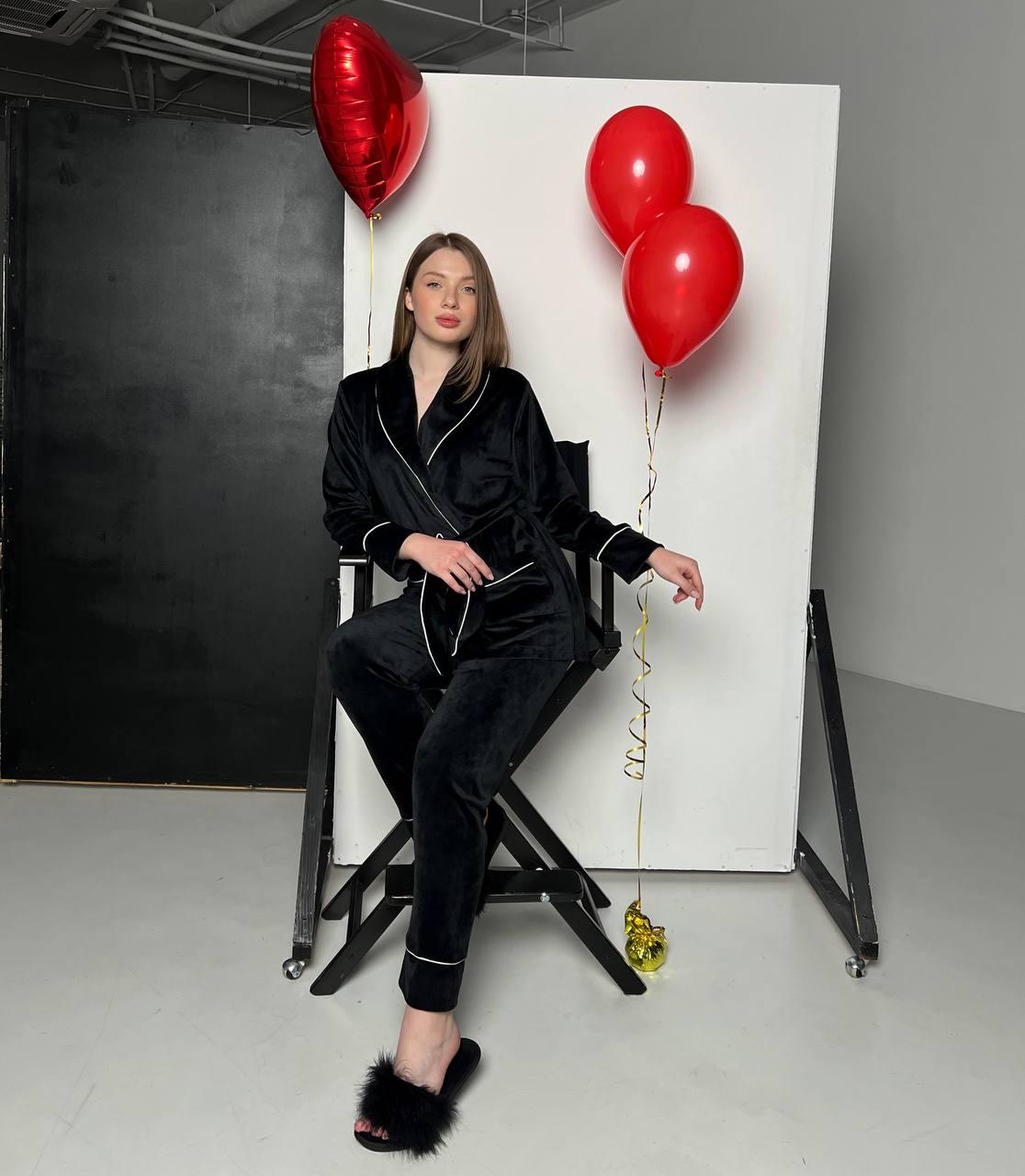 Піжама жіноча BO.Brand двійка велюрова, чорна