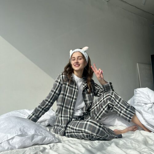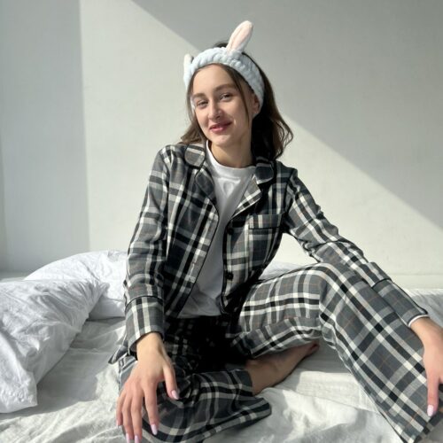 Жіноча піжама у сіру клітинку BO.Brand, натуральна тканина котон