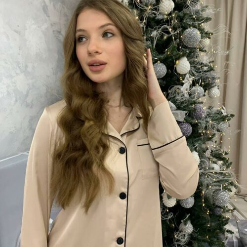 Жіноча піжама BO.Brand комплект сорочка та штани, бежевий