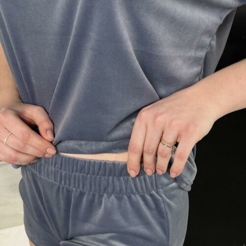 Жіноча піжама 3 в 1 BO.Brand велюрова (футболка, шорти та штани, морська хвиля)